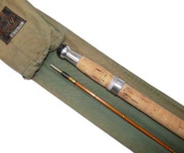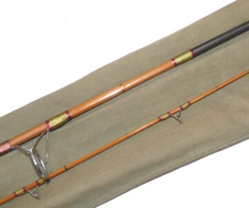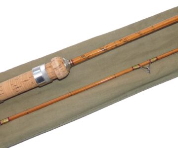 A Hardy The Wanless 4lb, 7’ 2-piece Palakona spinning rod in best collector condition. Rod No H56892 dating to 1963. original guides, tipped olive whipped burgundy with the butt ring factory copper under whipped. Bronze push ferrule with polished alloy stopper, 14.5” cork handle with sliding alloy reel rings. the cane is straight, the ferrule is tight. A stunning little rod that is ideal for trout & grayling fishing as well as perch & small species stalking. Comes in makers original fitted cloth bag.