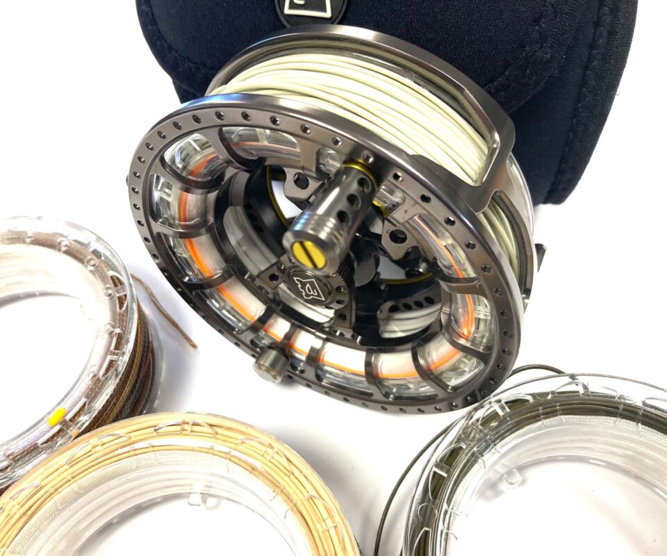 TT opinion: Here we have the fantastic 6000 ASR light weight Salmon / Saltwater reel with quick release spool, heavily ported design, great looking reels complete with three spare cassettes and pouch.