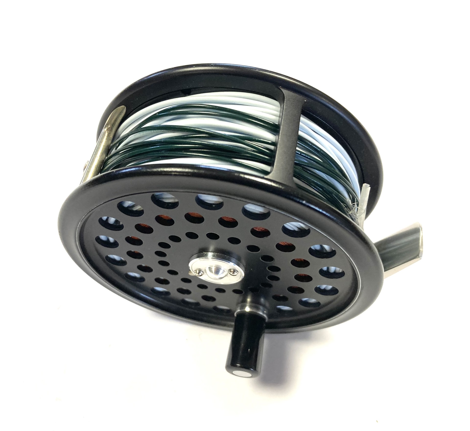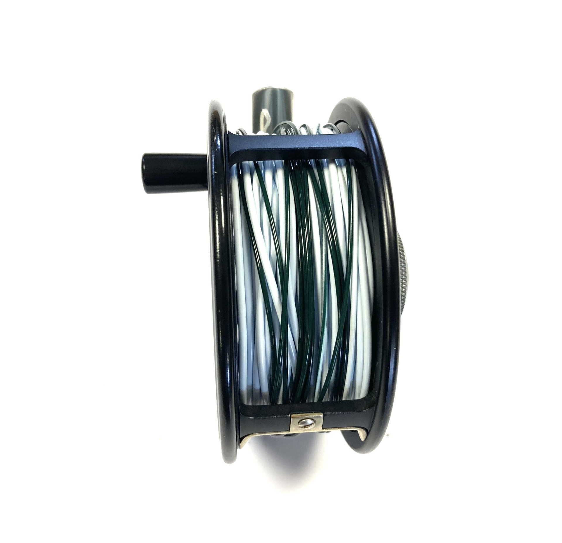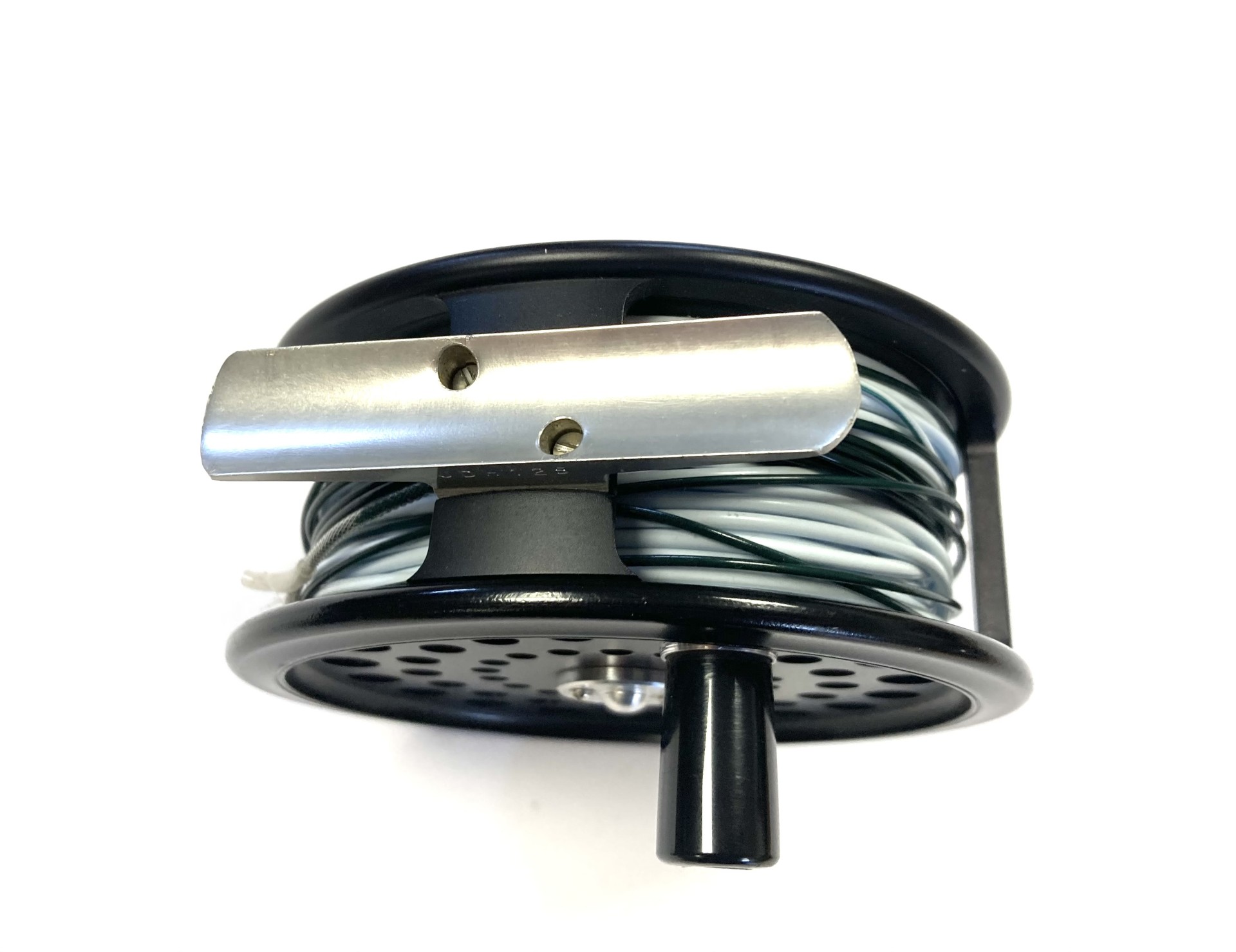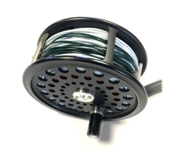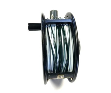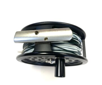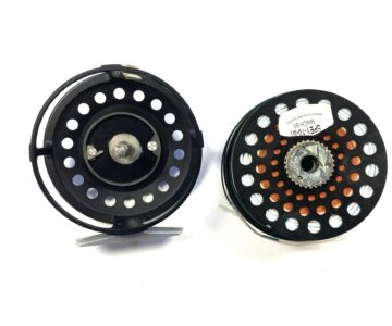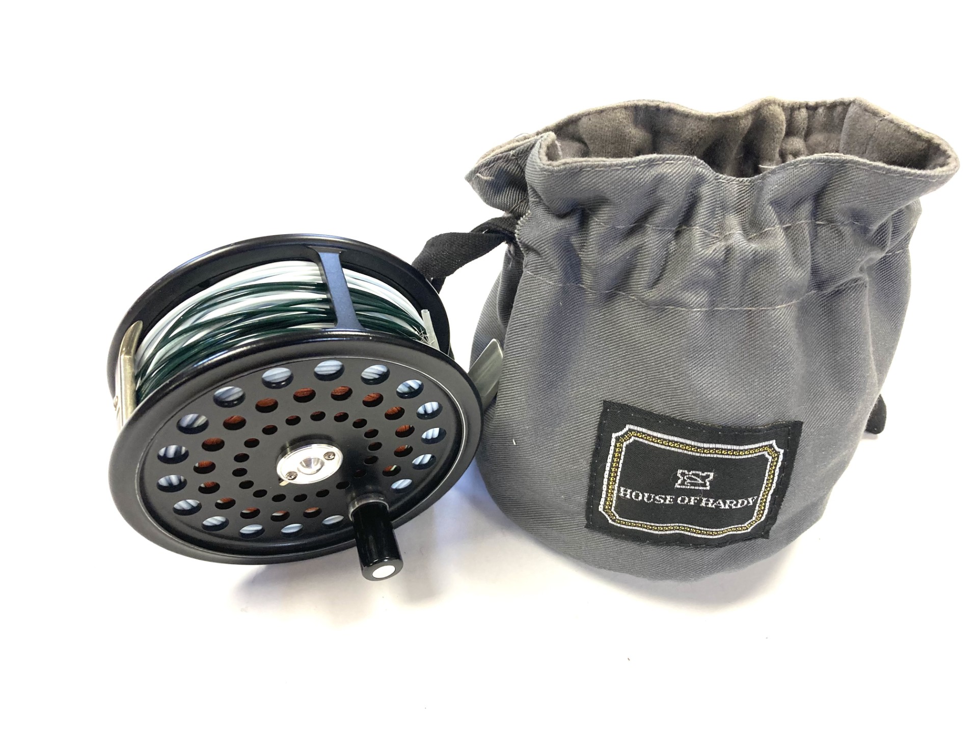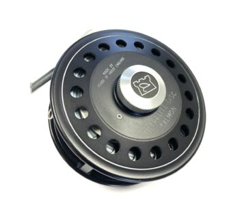 TT opinion: In excellent condition loaded with Hardy line this Hardy Ultralite Disc salmon fly reel with black handle, perforated face and two screw release latch, silver disc tensioner to rear plate. Complete with Hardy drawstring bag.