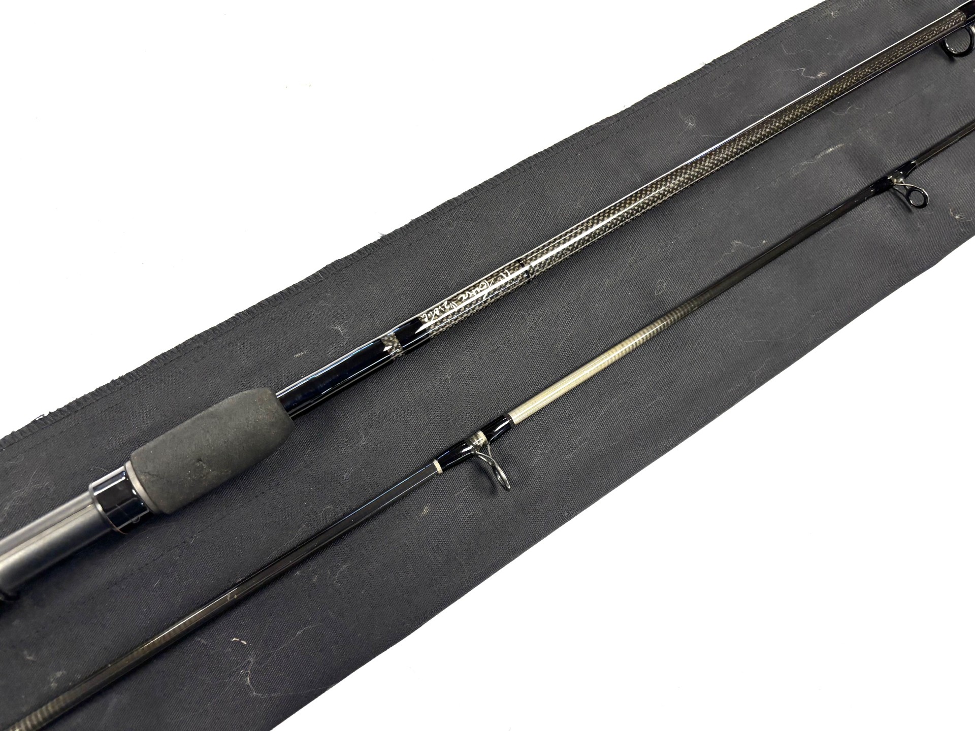 One of a few excellent Harrison Torrix carbon rods, this one 11ft in length with 1 1/2 Ib test curve. Fuji reel fittings on cork handle. Steve Harrison designed the Torrix. Known as one of the UK’s most accomplished rod builders, Harrison spent over half a year developing and refining the Torrix before subsequently launching the model. Complete with original black cloth rod bag.