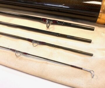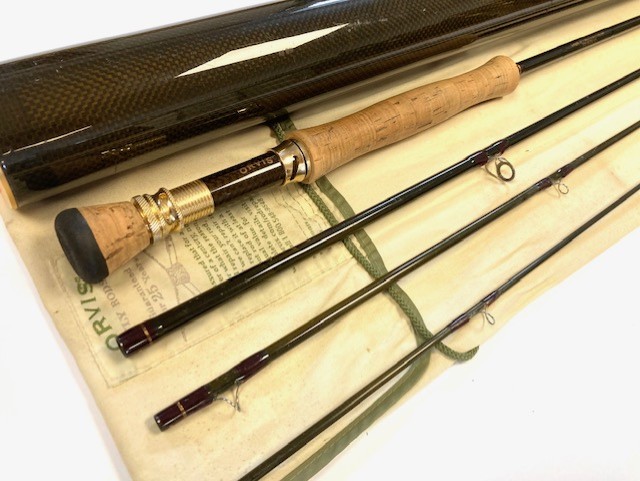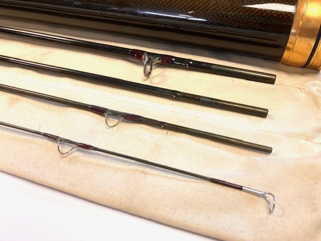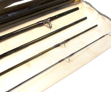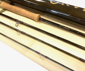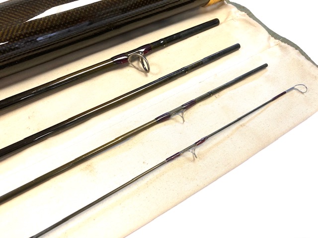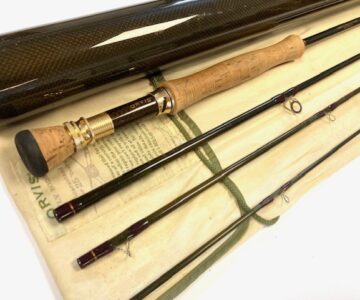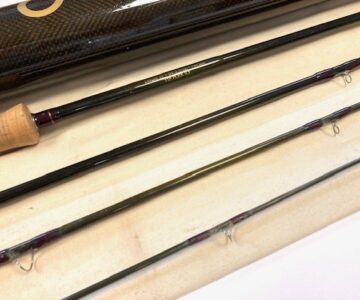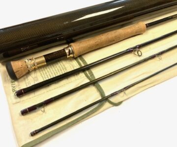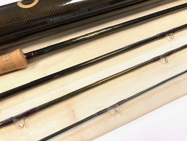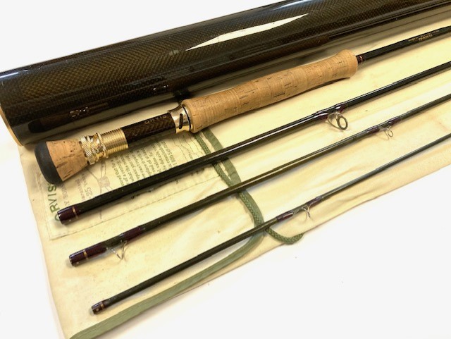 TT opinion: A super Orvis Helios ZG 10′ 4-piece graphite travel fly rod in fine condition, 3 1/8oz, tip flex for a #7 line. Dark brown blank, lined butt & stripper rings, 7″ shaped cork handle with carbon reel spacer with screw winch blue anodised fitting. Superb slim powerful rod, ideal for larger fish, comes in makers original bag & screw top protective tube.