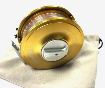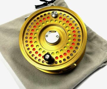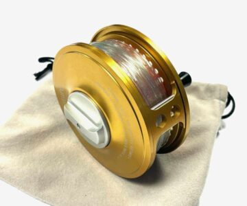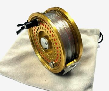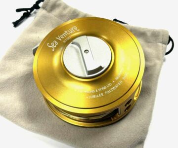 Just in this fine conditioned 4.5″ Youngs Sea Venture Salmon / Salt Water fly reel fully loaded. Set up for left hand wind but can be changed. Smooth alloy foot, tapered black handle with silver counter balance opposite. Disc drag in fine over all condition with Youngs reel pouch.
