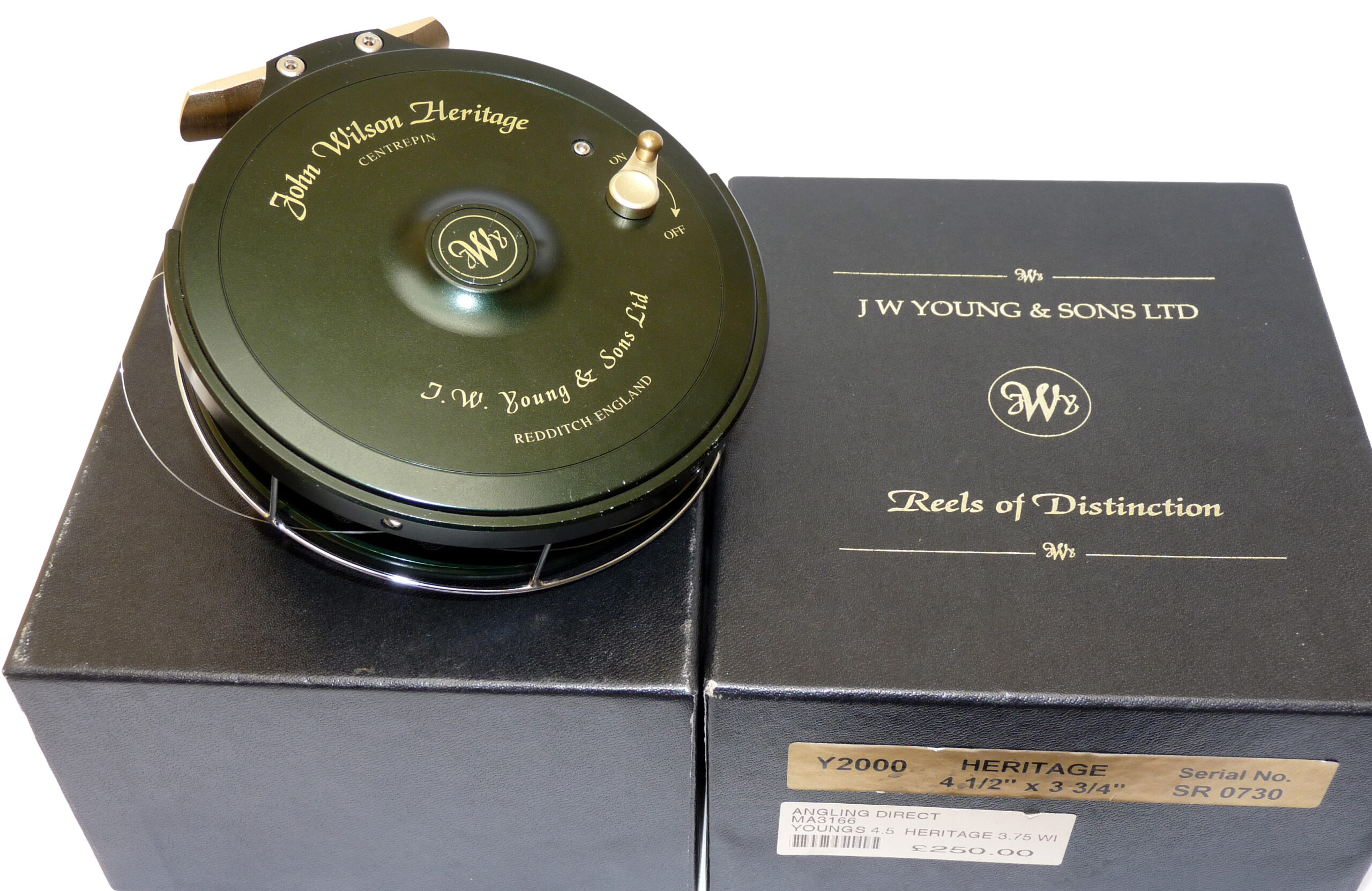 John Wilson Heritage 4.5″ aerial centrepin reel by J W Young, mint in box with papers
