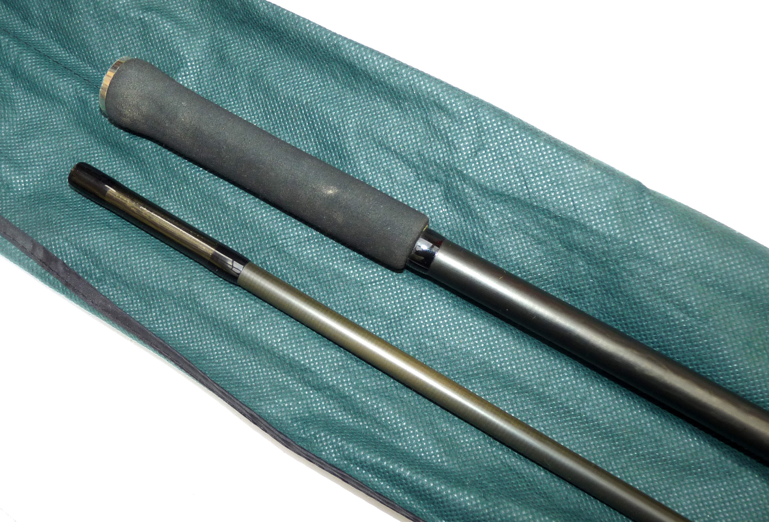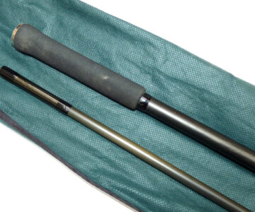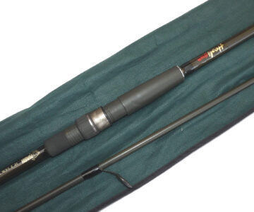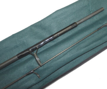 Kevin Nash Hooligun 12’ 2 piece graphite carp rod, in superb condition, 2 1/4lb TC, 6 lined rings in all, spigot ferrule, screw reel fitting, good all round carp or pike rod, comes in maker’s original bag.