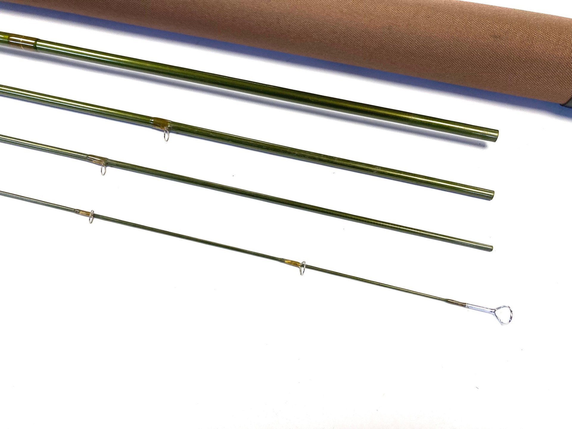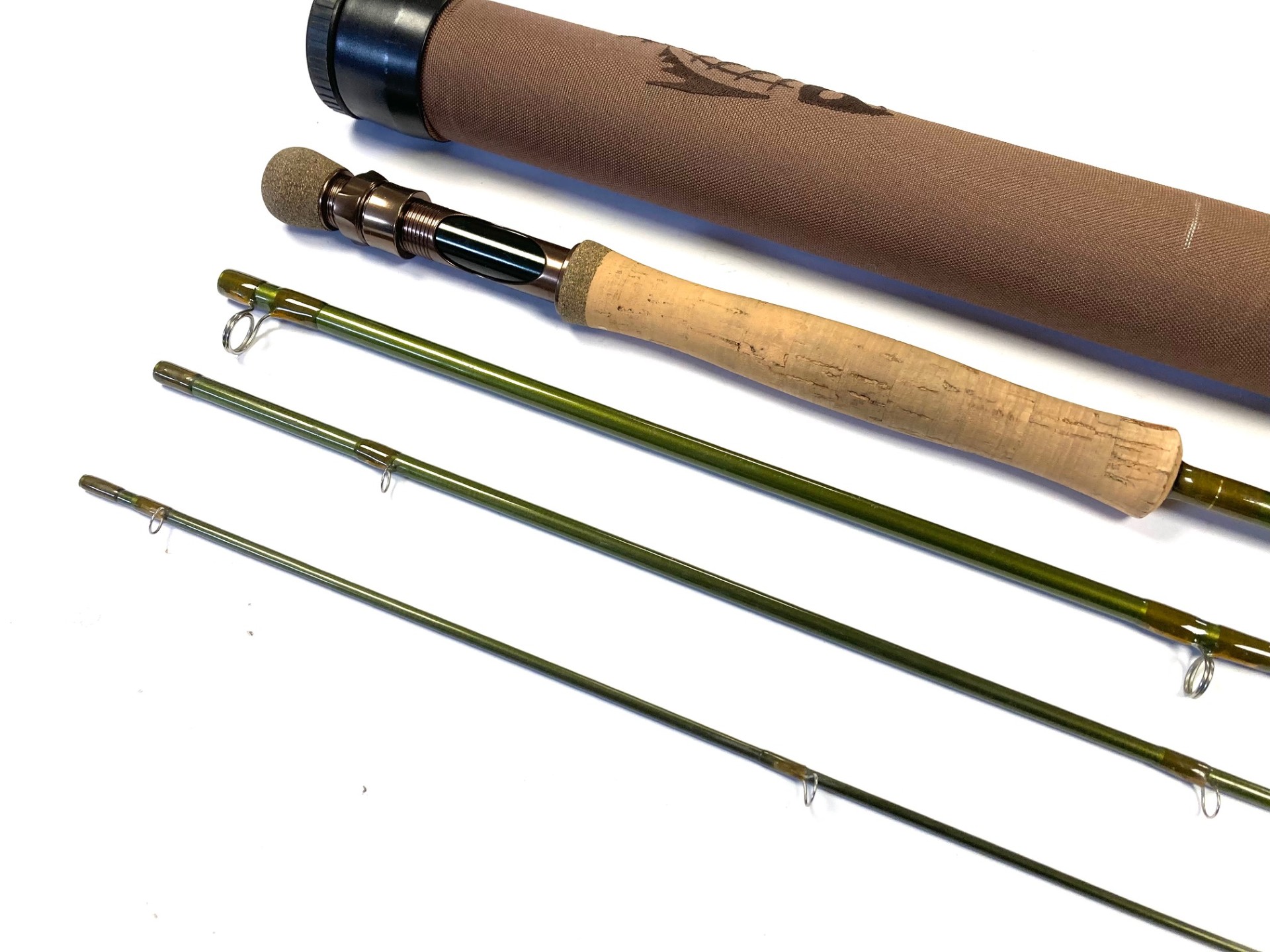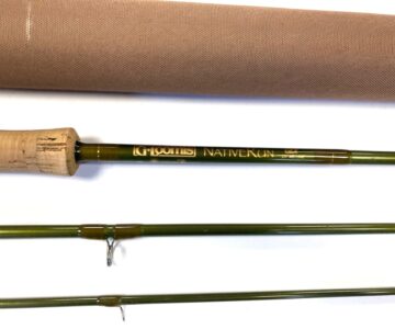 TT opinion: A superb G Loomis NATIVERUN GLX 10′ 4 piece carbon trout fly rod in superb preowned condition. A beautifully presented rod with cork handle, screw in reel fittings on dark green blanks. Comes in makers original bag & Cordura tube.