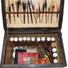 A collection of assorted vintage and classic lures, including Percy Wadham Nature bait in spangeloid finish. two soleskin minnows with celluloid fins, a high silver content long slim Devon with flutted tail.various alloy and brass Devons by Hatton of Hereford and a lots of vintage plastic plugs and metal devons. all in a new double sided wood box 24″ x8″ x2-1/2″
