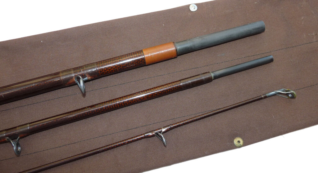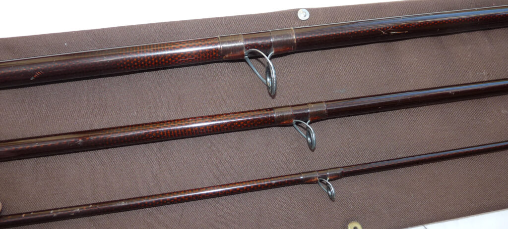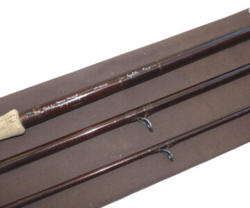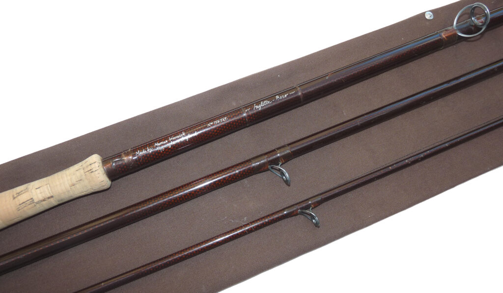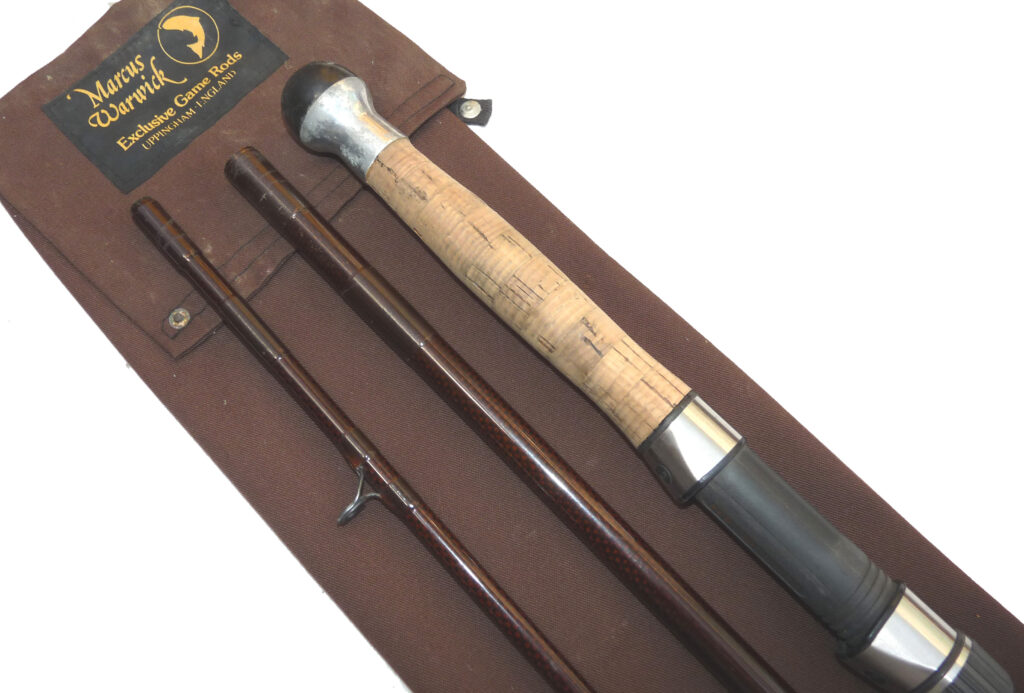 Marcus Warwick “The Diplomat”, 15’ 3 piece woven graphite salmon fly rod, line rate #9, burgundy blank, SIC guides, one whipping replaced to butt section ferrule, 25” cork handle with screw winch fitting, fine pre-owned condition, high quality rod, from one of England’s best makers, in maker’s original bag.