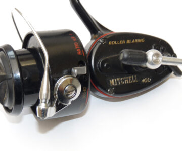 A Mitchell 400 Roller Bearing French-built spinning reel in fine condition. screw fold handle, good snap shut bail & working ratchet lever check. The reel is all original and retains most factory finish. A very smooth-running reel. These are multi-use reels. Spinning, float or feeder fishing. Great for most species and with the roller bearing they handle heavier fish such as carp pike and salmon too.