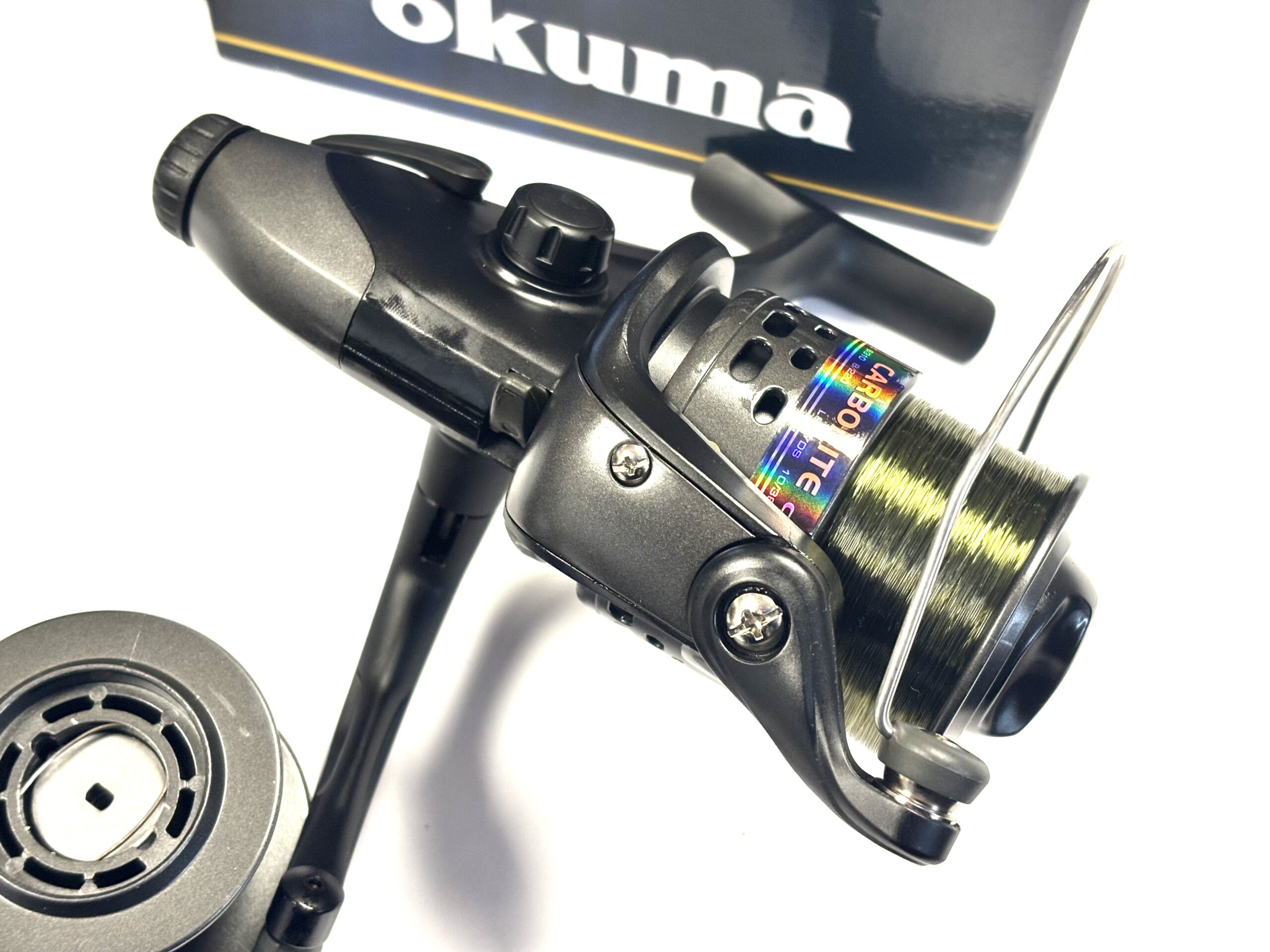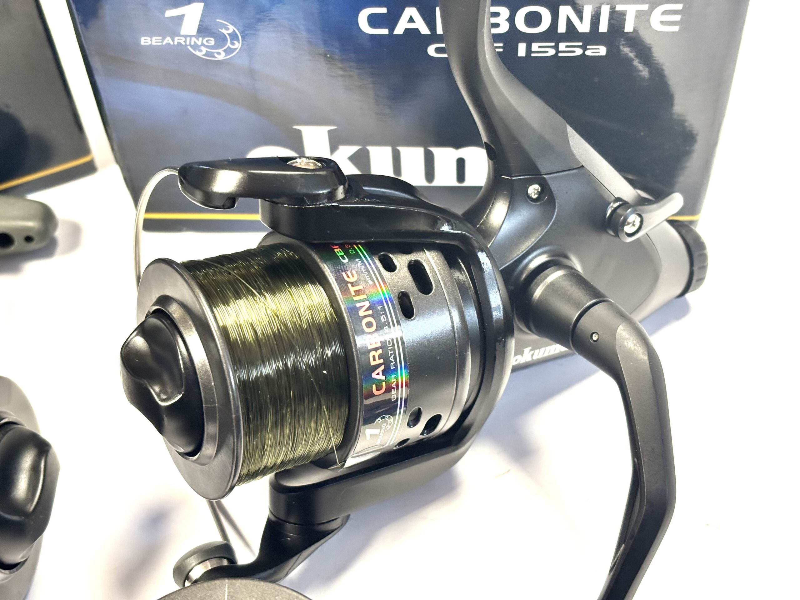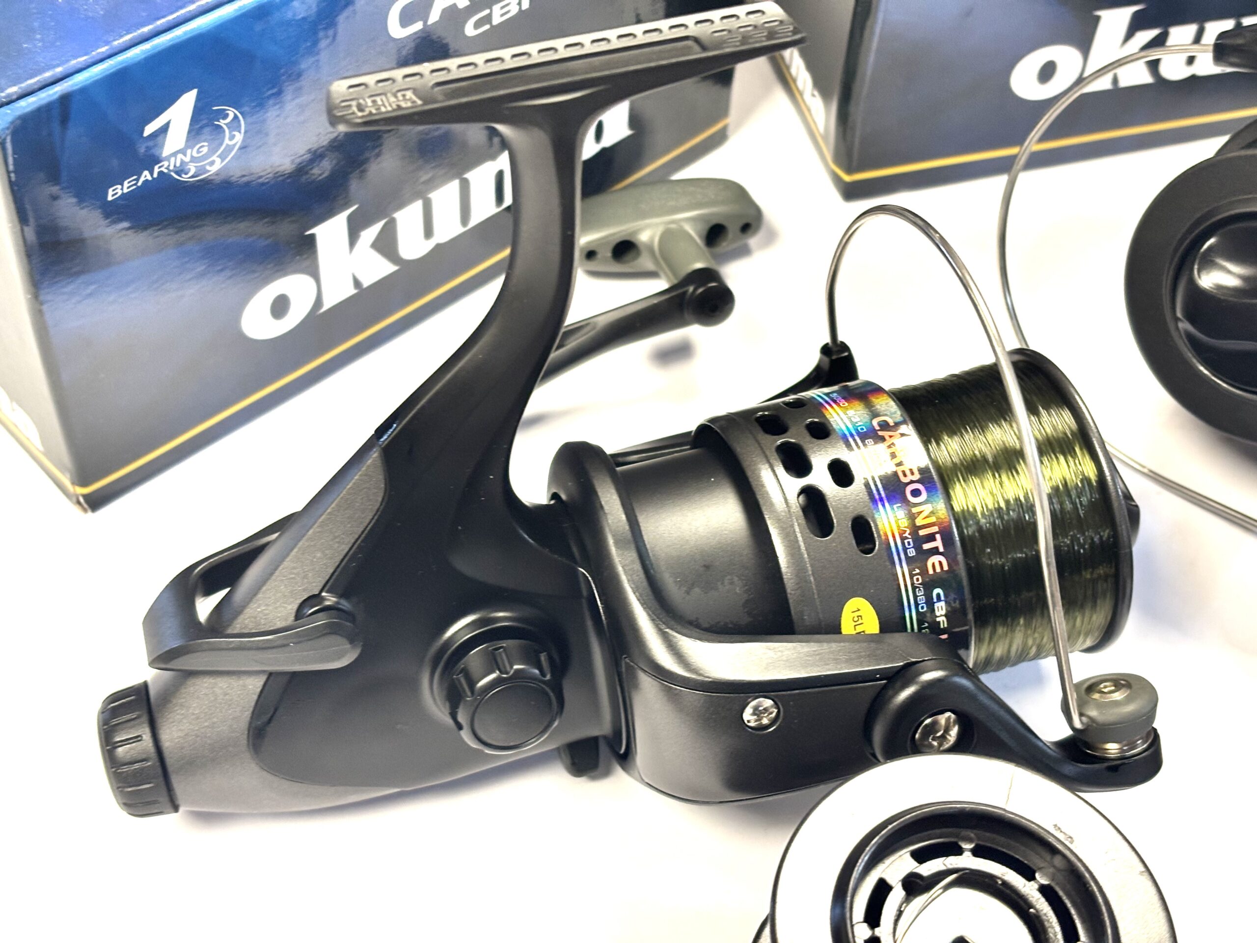 Thomas Turner Opinion: An excellent pair of Okuma Carbonite CBF155 fixed spool reels, both featuring strong rear drag systems. Supplied with spare spools and complete with original boxes. A practical and reliable setup for coarse fishing.