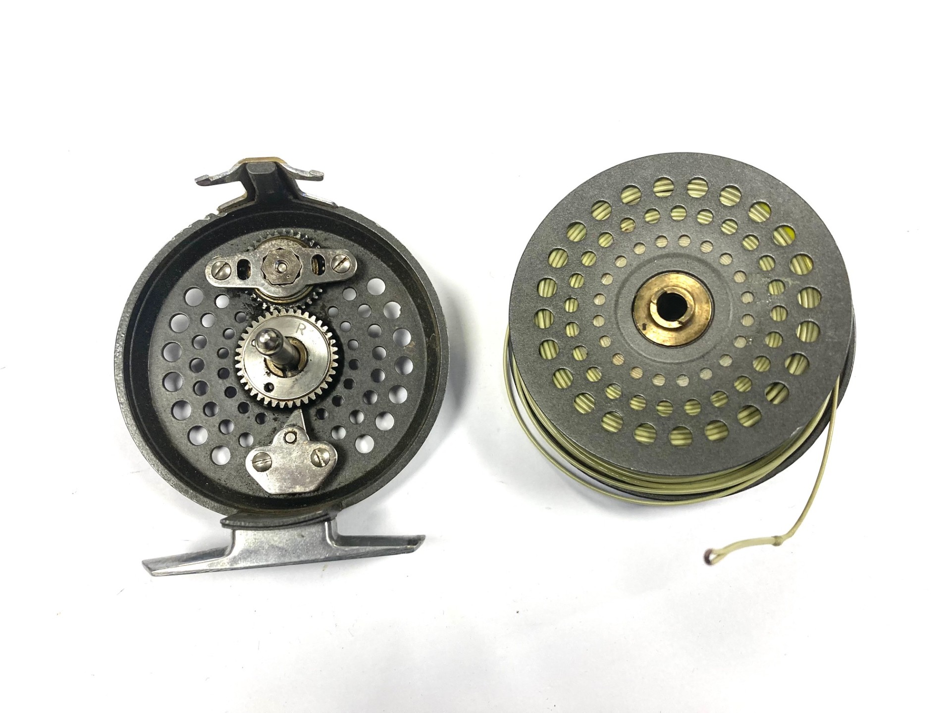 In full working order, this English-built 3″ trout fly reel is a high-quality alloy piece of engineering. Counter balanced handle with backplate tension adjuster. Fish LHW or RHW. good used condition throughout. Reel comes with spare spool and is ready to fish!