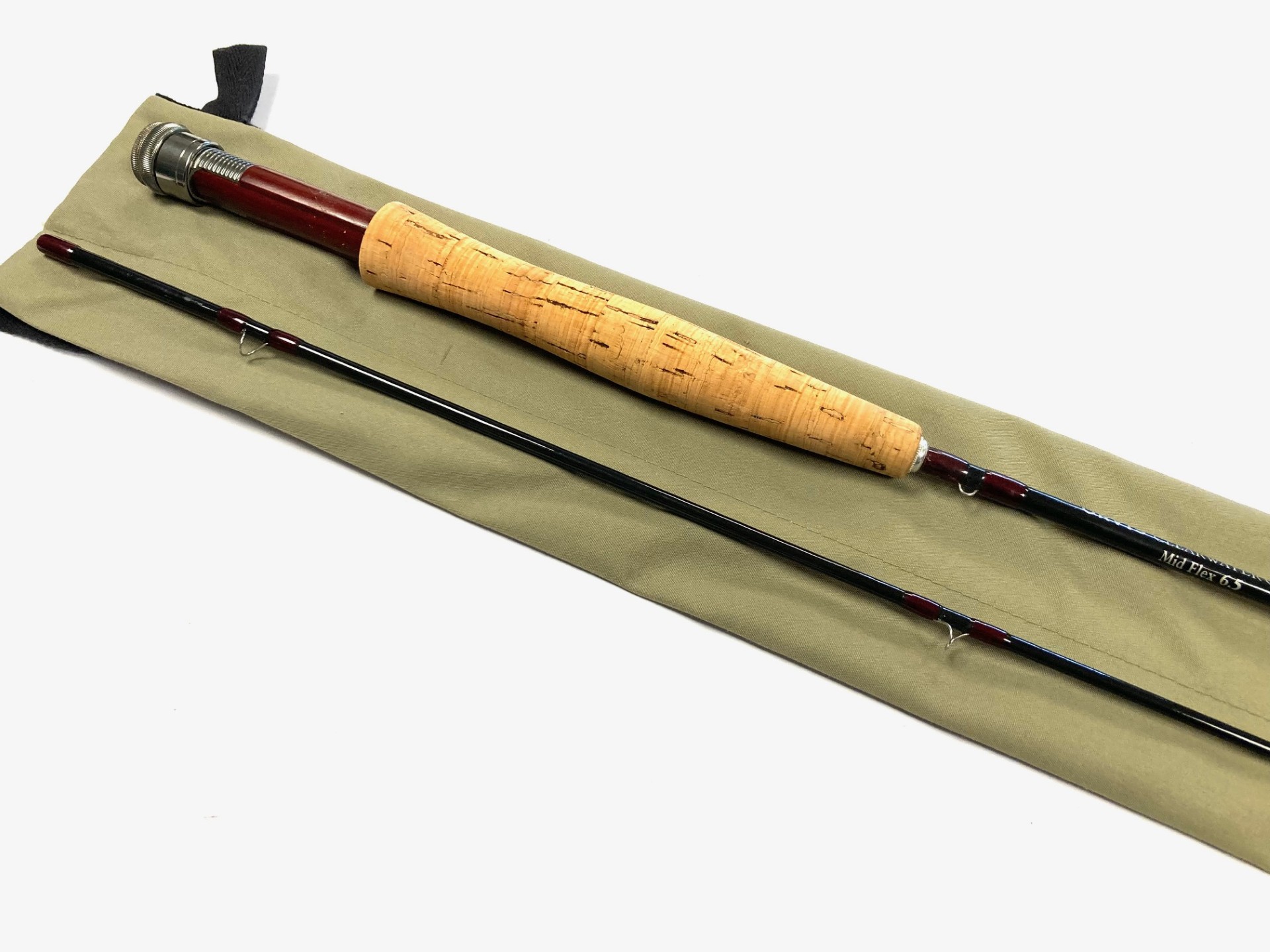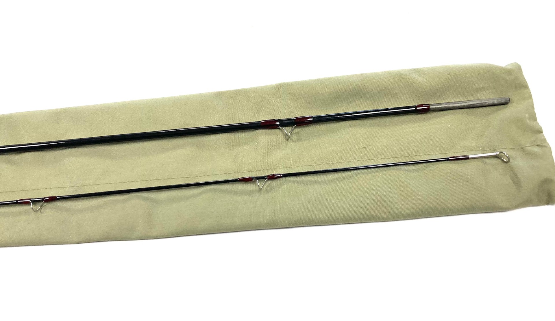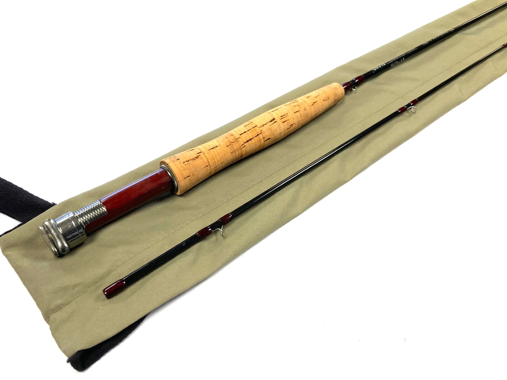 TT opinion: Another classic Orvis Clearwater 7’ 9″ trout fly rod with clean cork handle, dark grey blank and in excellent original condition, complete with original green Orvis rod bag.