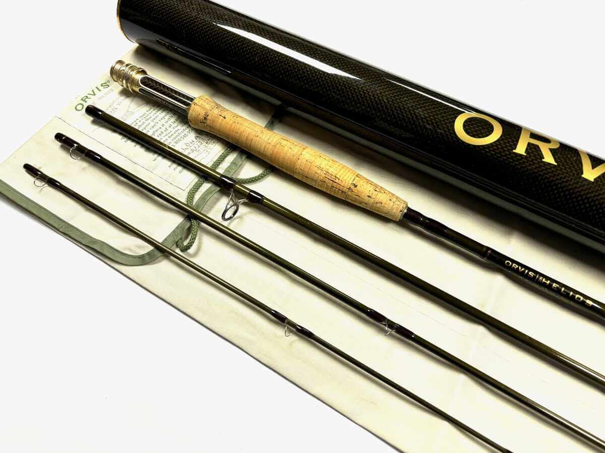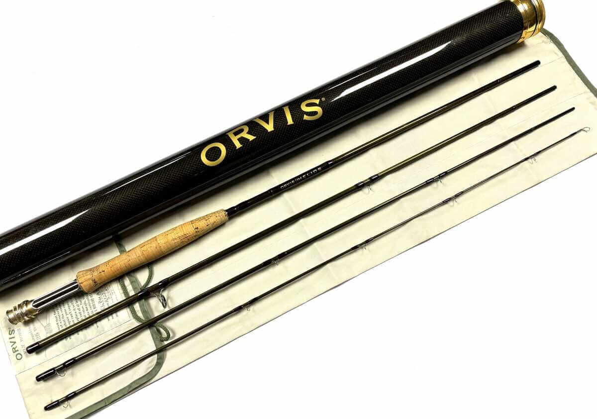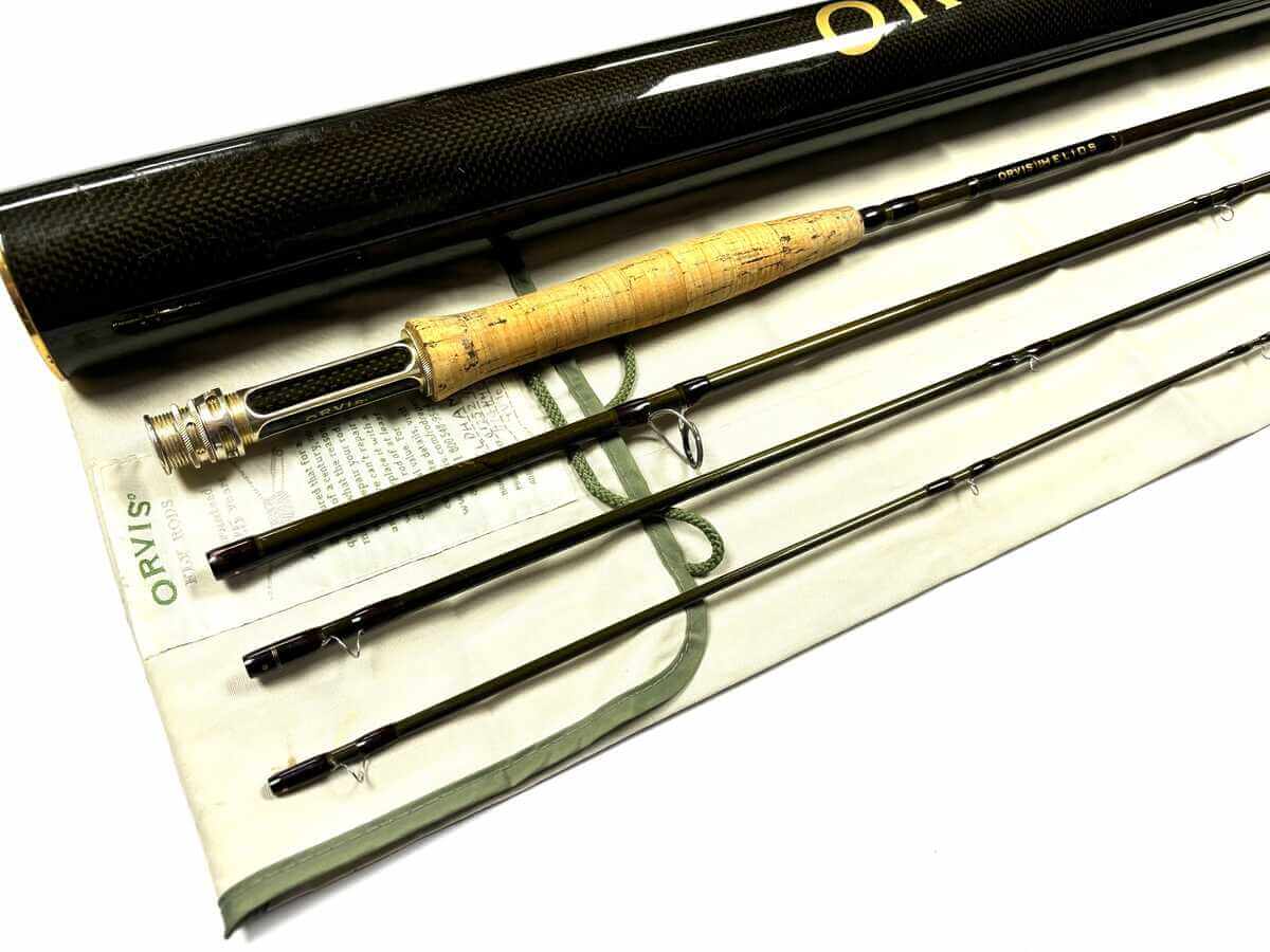 TT opinion: An excellent used example of this high quality Orvis fly rod. Mid Flex 6.5, weight 2 3/8 oz. Ultra slim and light to handle, bronze finish with lined butt ring. Fly keeper ring. 7” shaped cork handle, carbon reel seat and screw reel fitting. A superb quality rod in makers fitted cloth bag and screw top carbon rod tube.