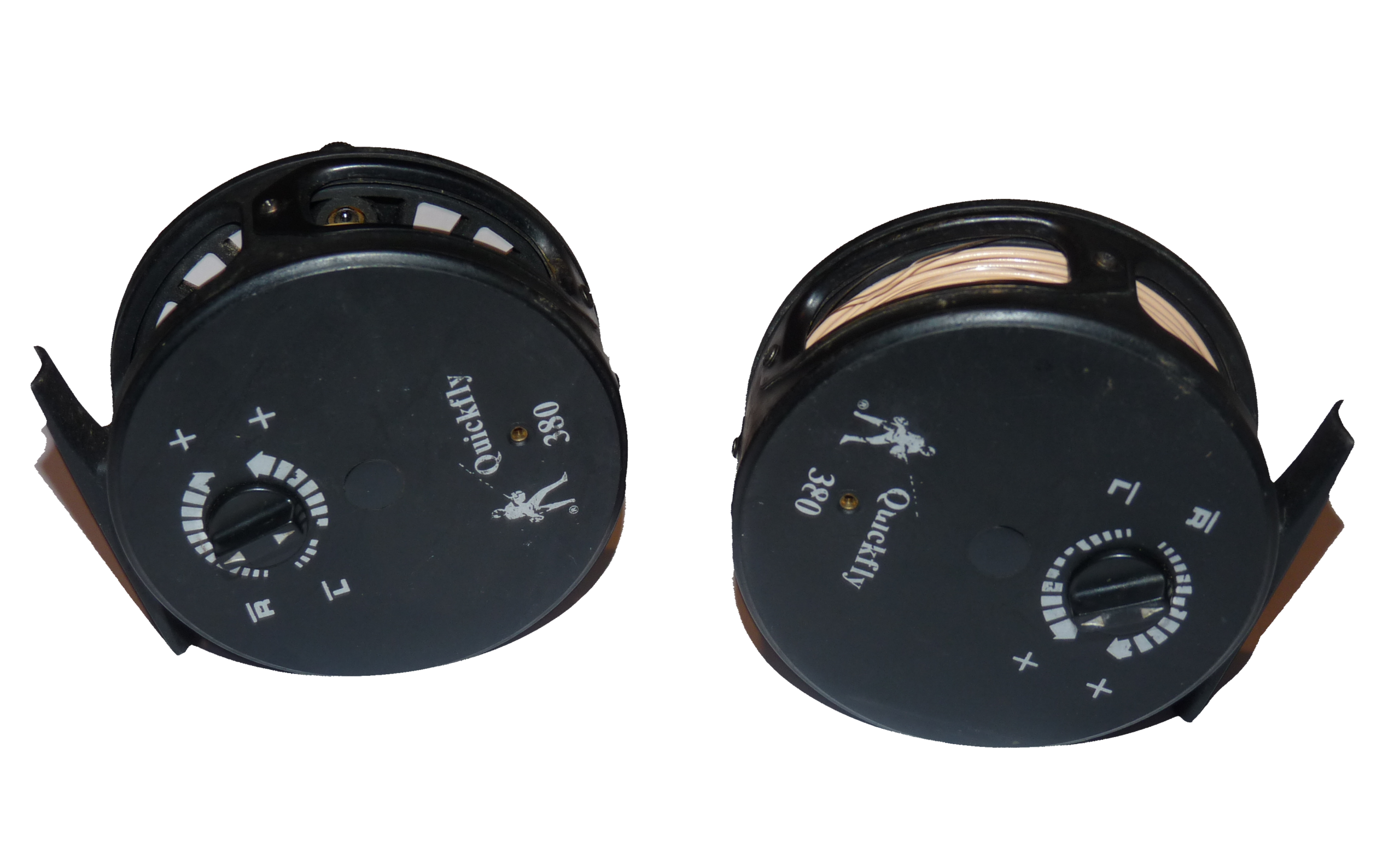 Pair Of Dam Quick Fly 380 Reels. Both in very good working order with floating lines already on. Disc drag tensioner. Good usable reels.