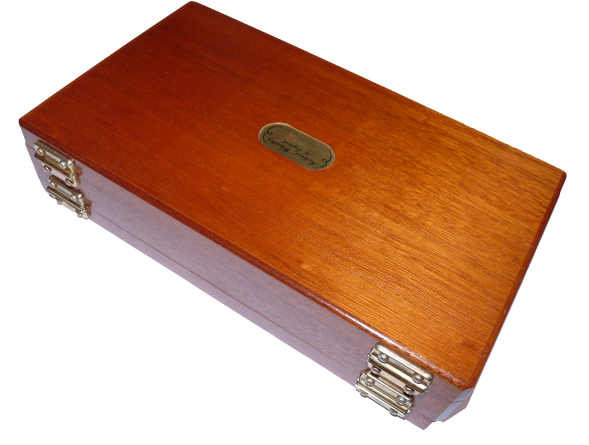 A fine large wooden Richard Wheatley fly case with two foam sections to store flies. The box already has a quantity of wet and dry flies and has the copper coloured Wheatley oval plaque to lid.