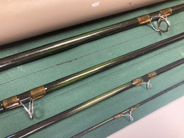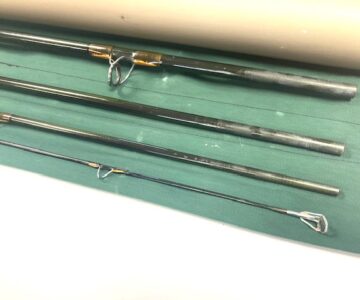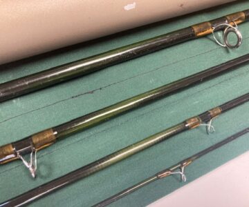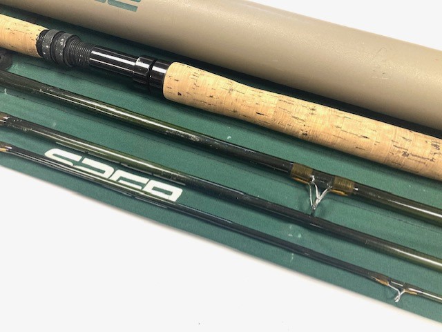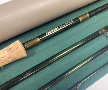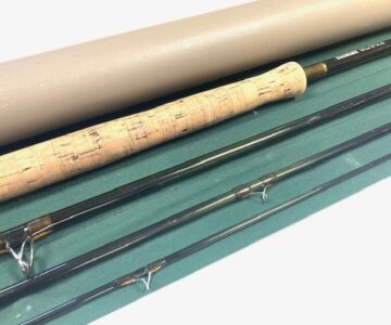TT opinion: A four-piece Sage Salmon fly rod line rate #10 Sage Graphite IV, 15ft 1”, green finish blank, large-diameter intermediates. 22” shaped cork handle with twin-screw black reel fitting. The rod does have marks on the blank consistent with use. Complete in green Sage rod bag and protective tube.