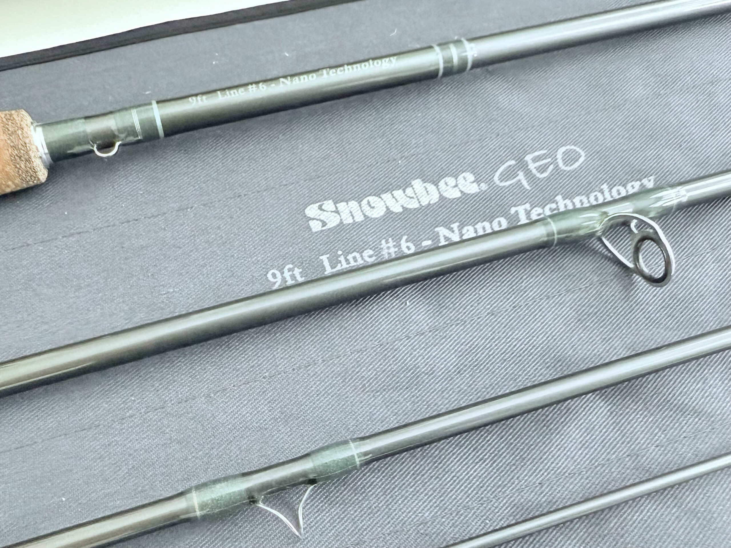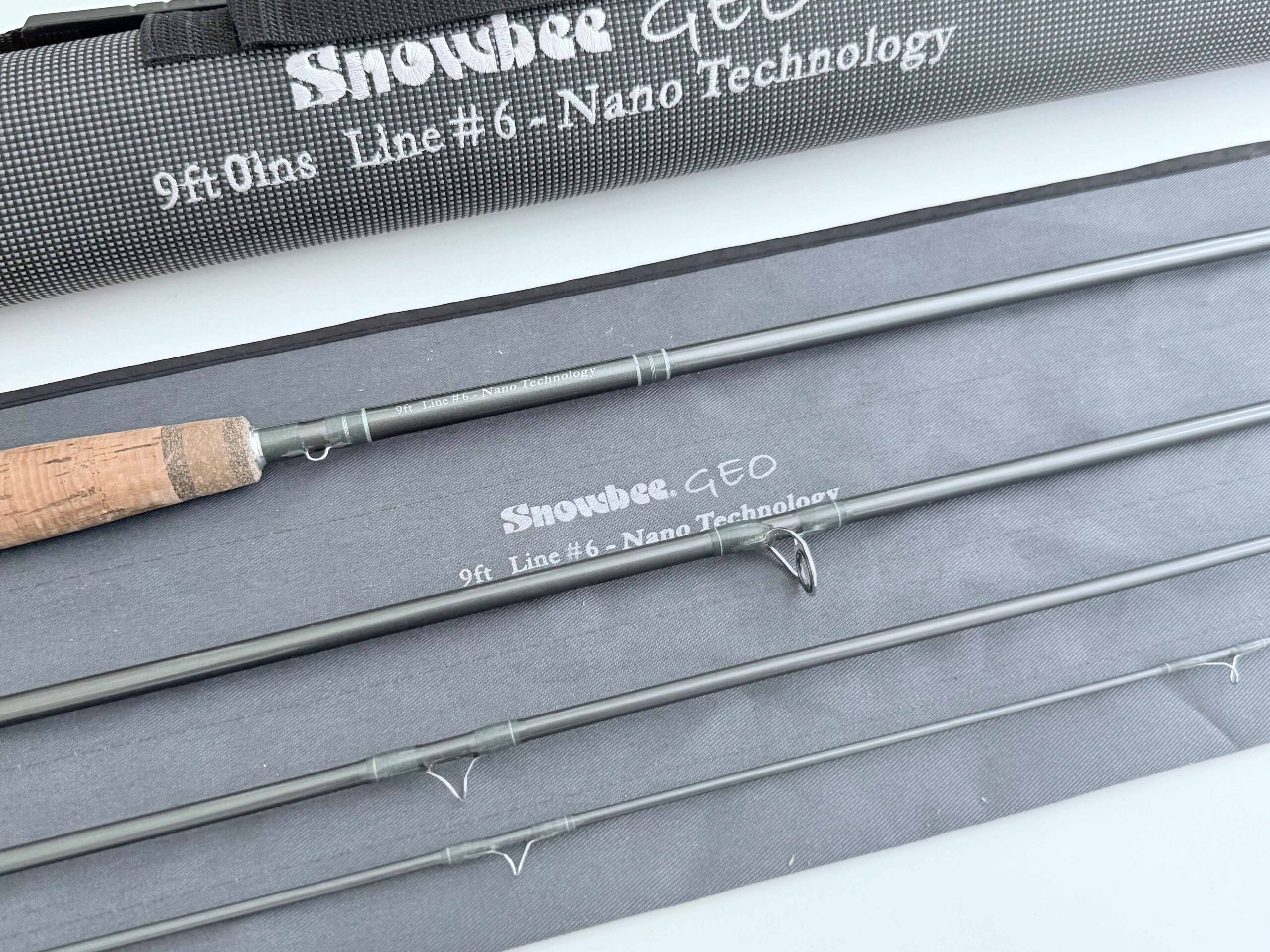 TT opinion: An excellent Snowbee Geo 9 foot Trout fly rod. 4 piece with alloy guides, smooth cork handle and original bag and cordura tube.