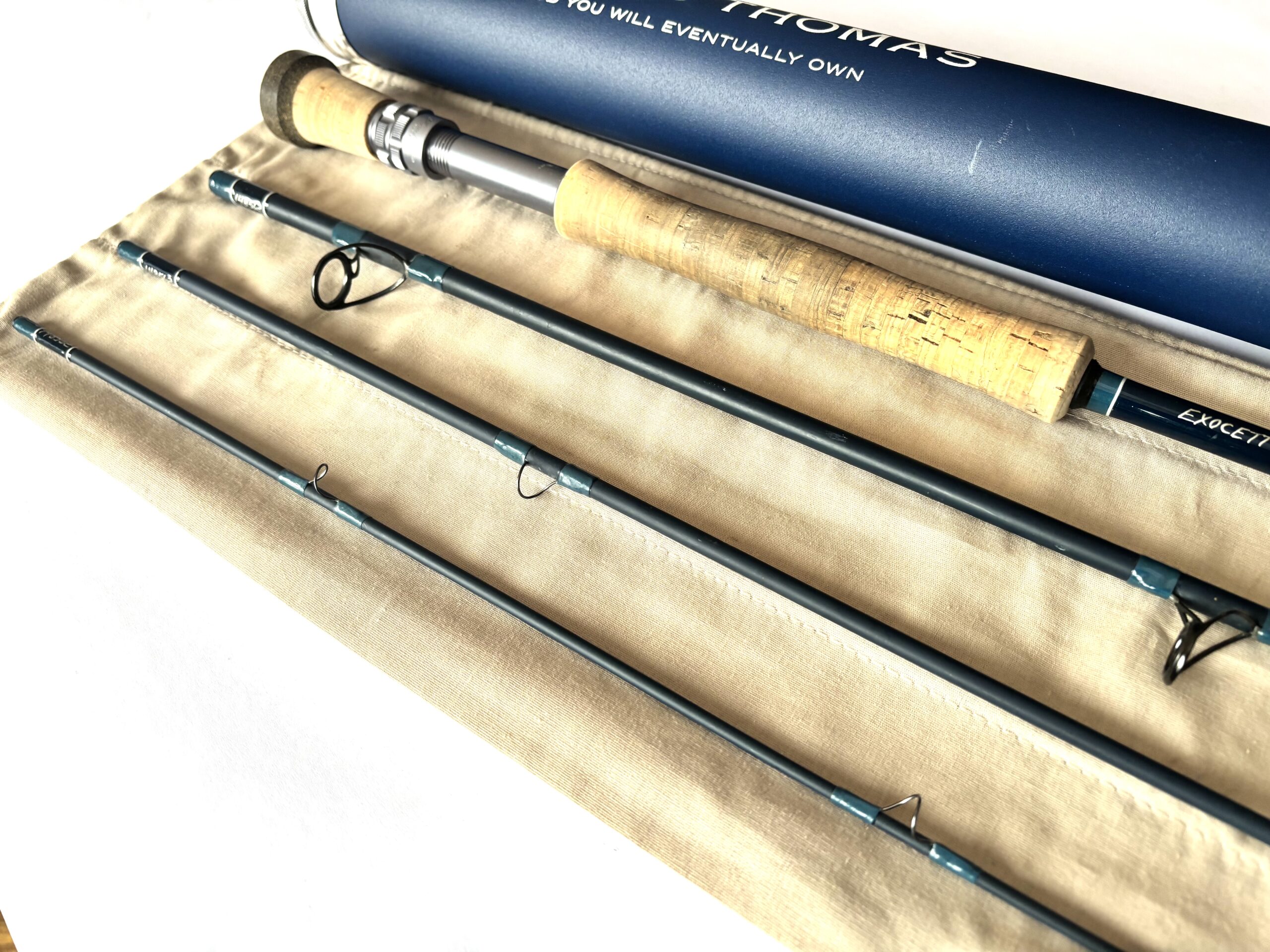 Maker: Thomas & Thomas; Model: Exocett; Year: 2000s; Condition: Excellent; Length: 9’; Line Rating: #10; Country: USA; Ideal Use: Trout/Saltwater Fly Fishing; TT Opinion: As part of a large haul of T & T fly rods direct from Thomas & Thomas in the US this excellent four piece carbon fly rod with a line rating of #10 features a smooth cork handle, lined alloy guides and comes complete with original rod bag and outer tube.