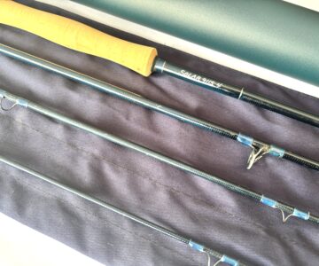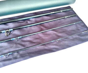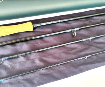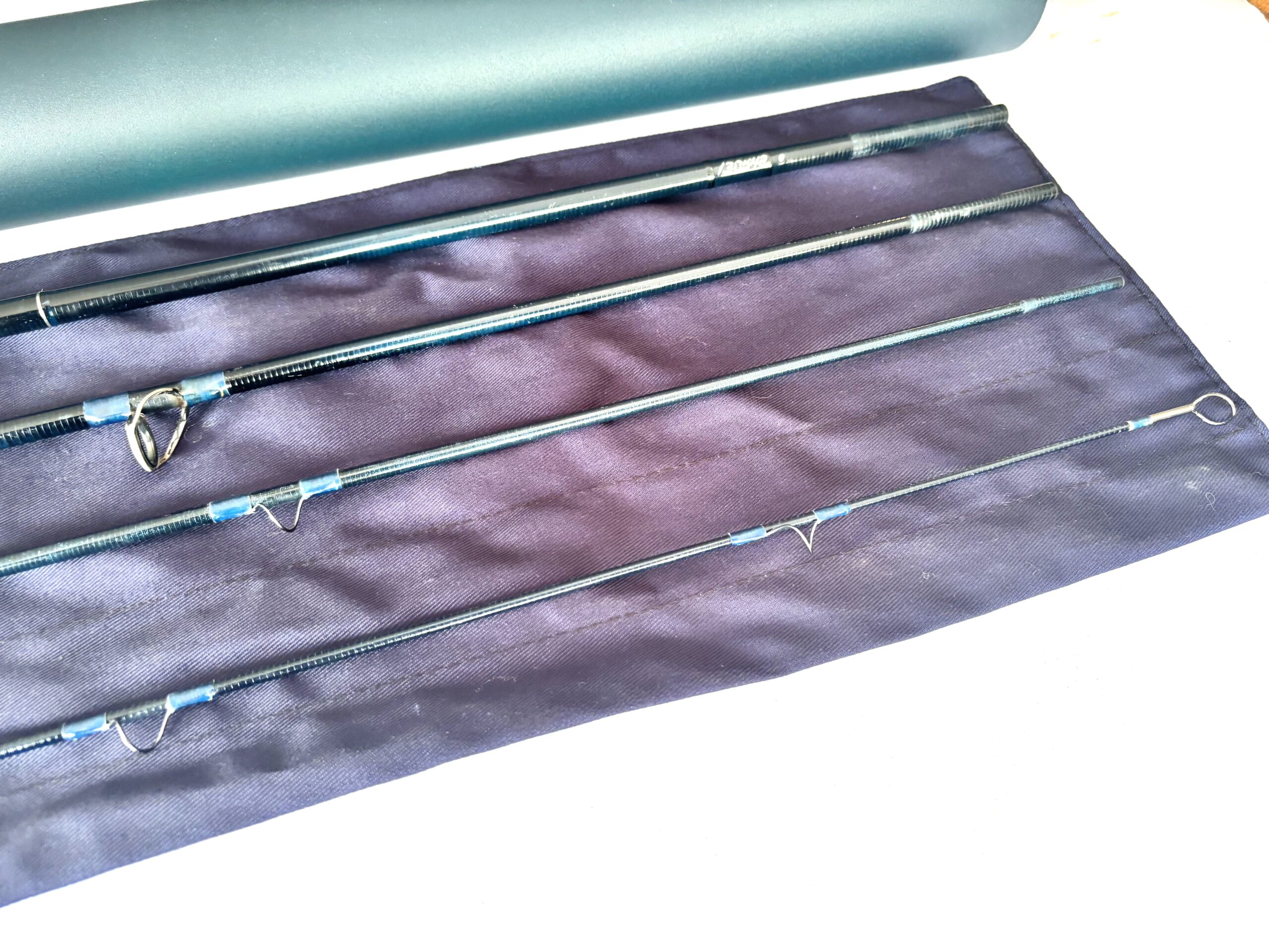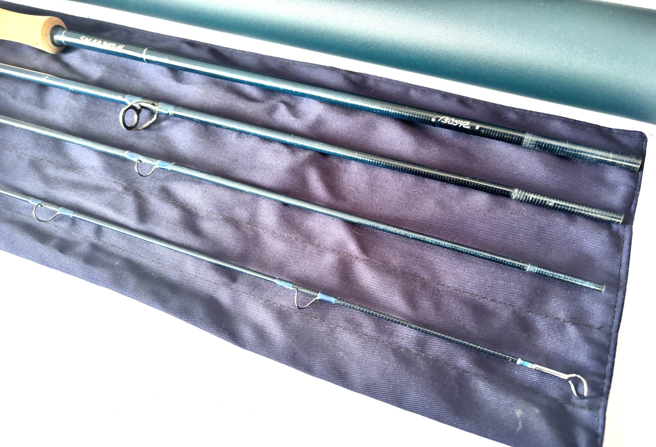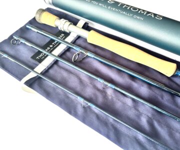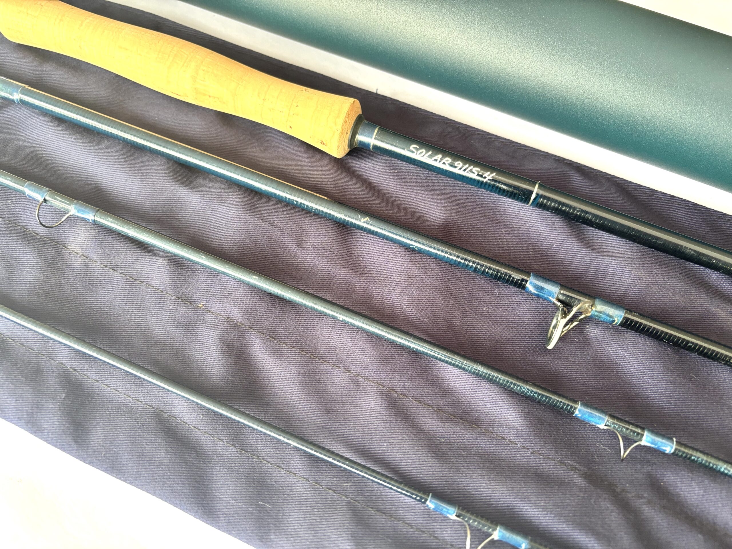Maker: Thomas & Thomas; Model: Solar; Year: 2000s; Condition: Fine; Length: 9’; Line Rating: #11; Country: USA; Ideal Use: Trout/Saltwater Fly Fishing; TT Opinion: As part of a large haul of T & T fly rods direct from Thomas & Thomas in the US this fine four piece carbon fly rod with a line rating of #11 features a smooth cork handle, lined alloy guides, blue wraps and comes complete with original rod bag and outer tube.