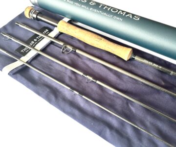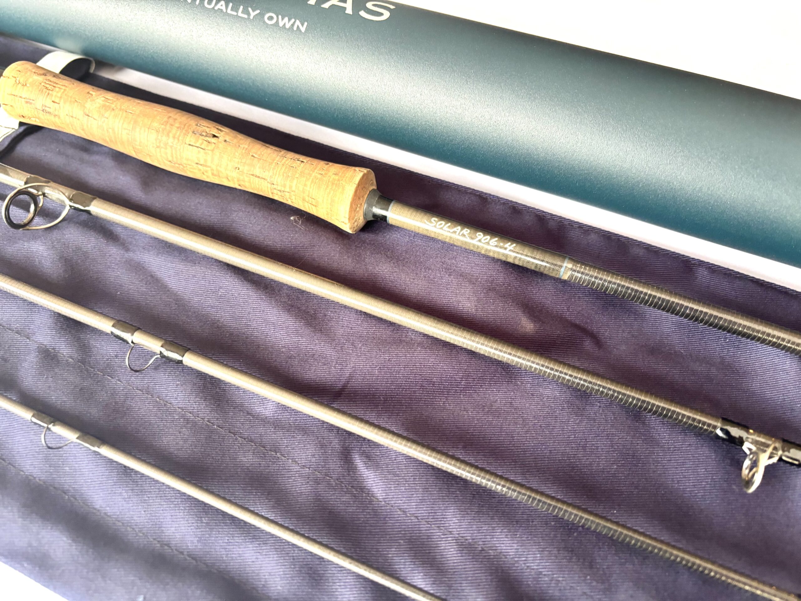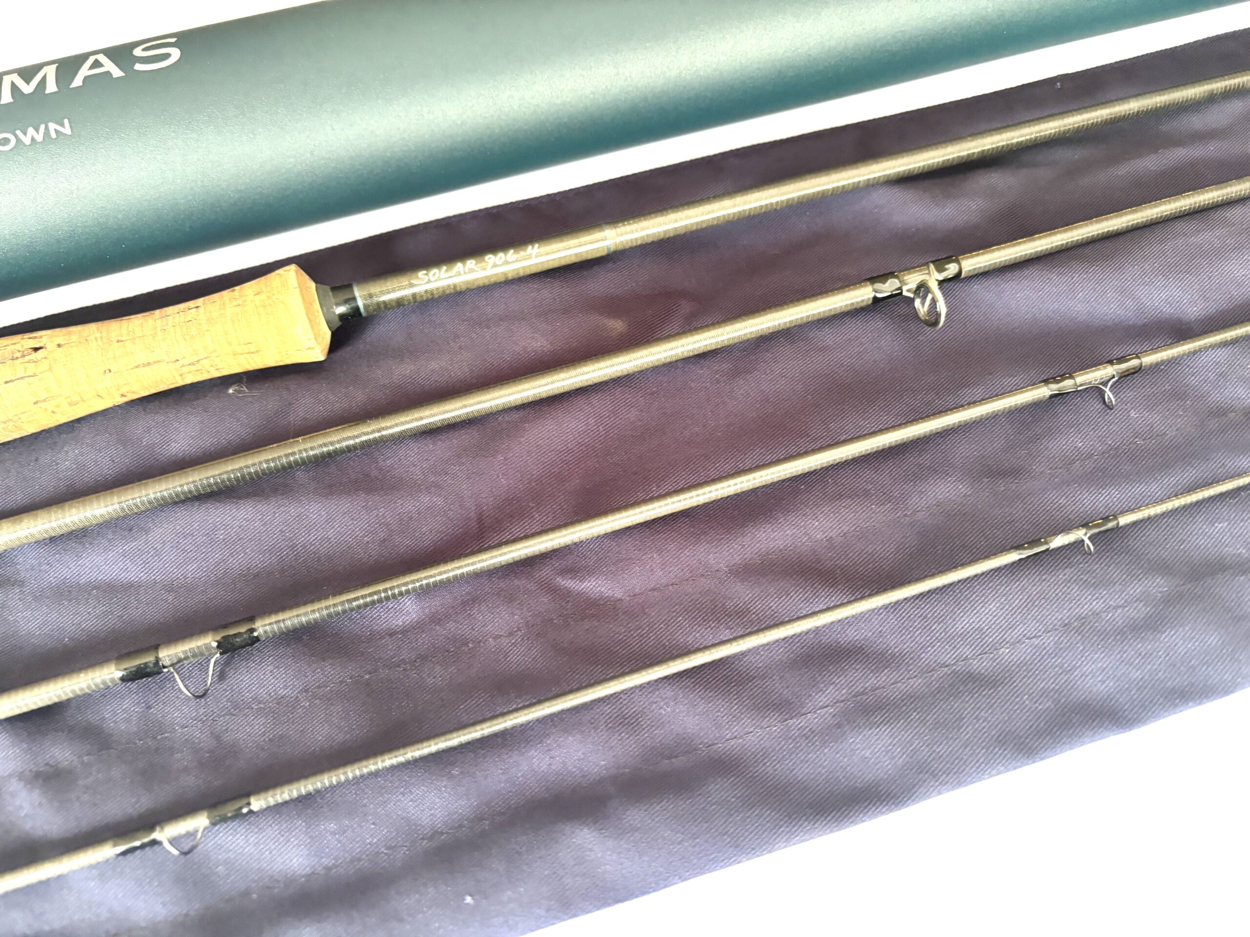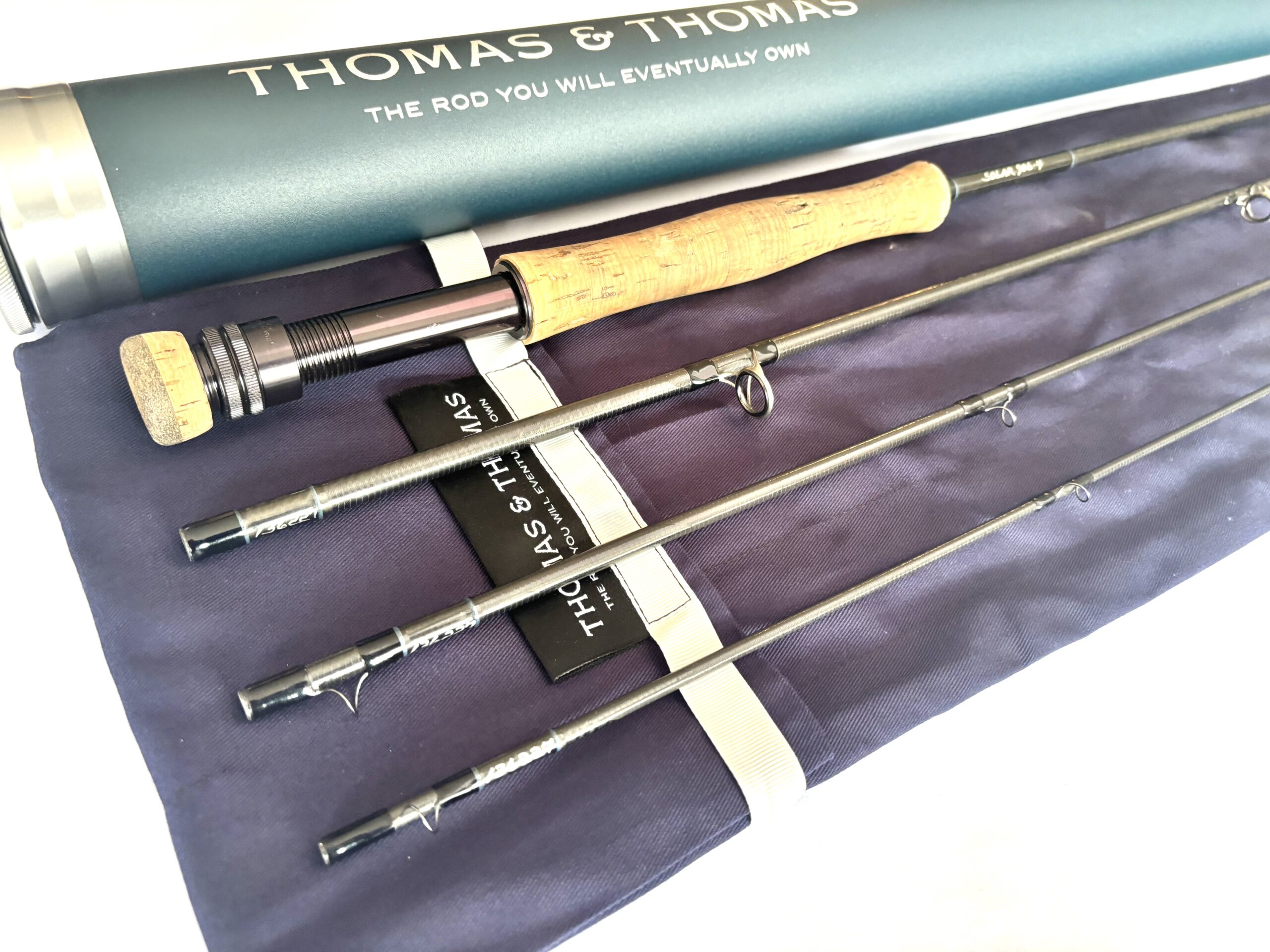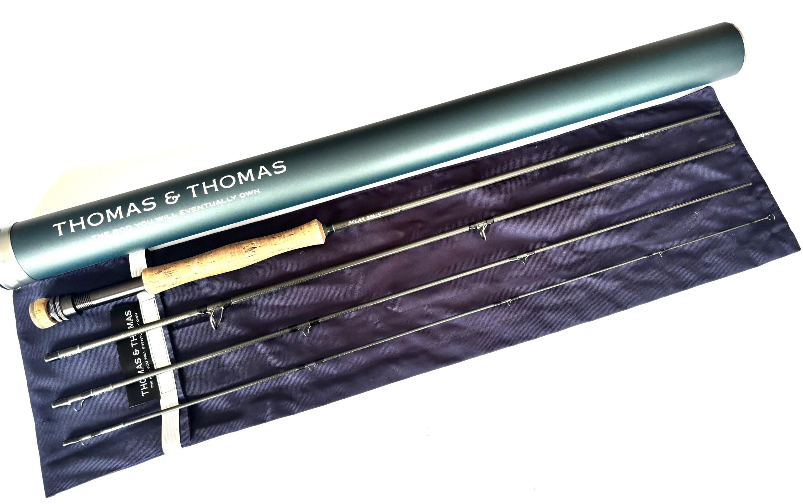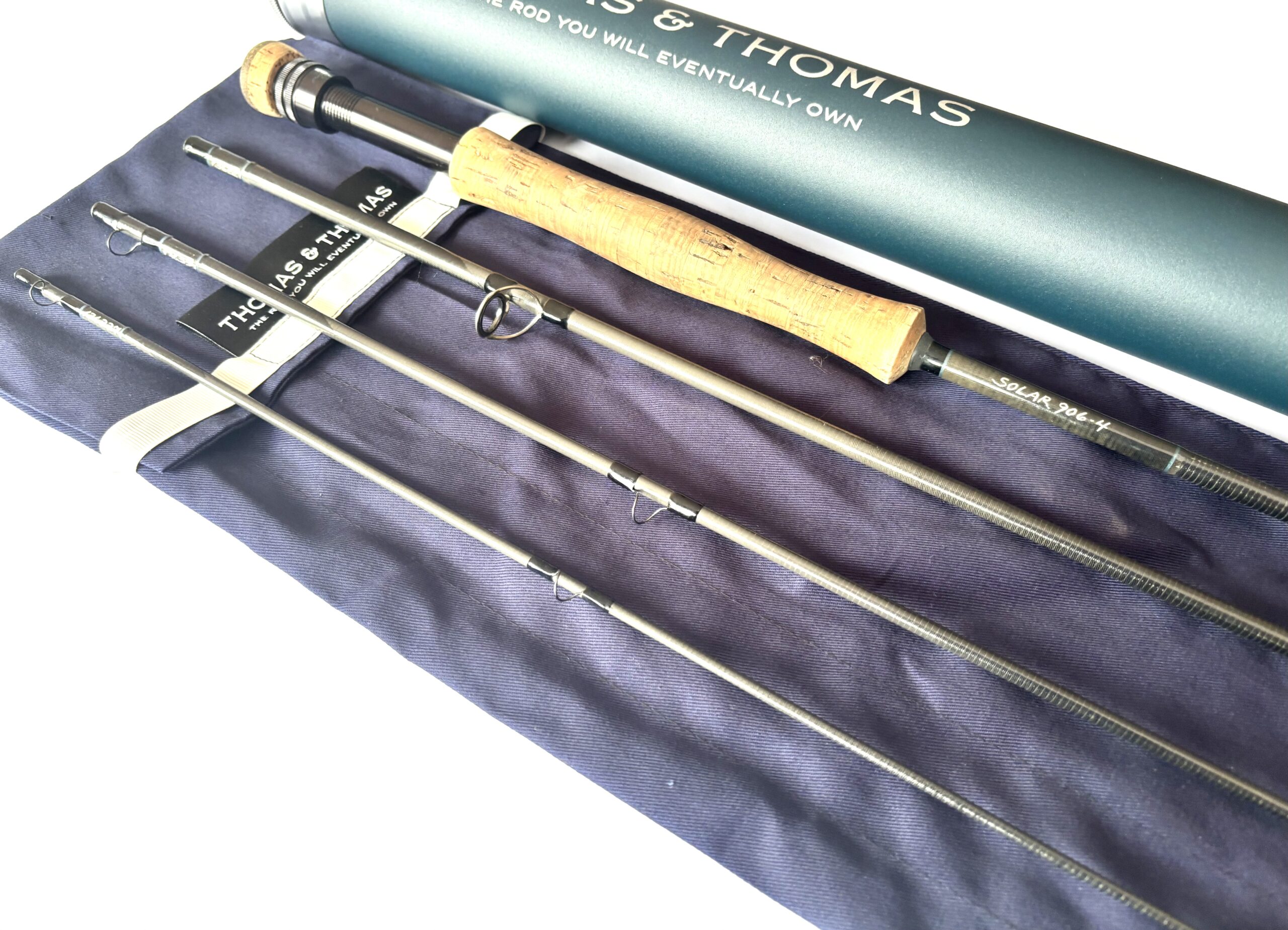 Maker: Thomas & Thomas; Model: Solar; Year: 2000s; Condition: Fine; Length: 9’; Line Rating: #6; Country: USA; Ideal Use: Trout/Saltwater Fly Fishing; TT Opinion: As part of a large haul of T & T fly rods direct from Thomas & Thomas in the US this fine four piece carbon fly rod with a line rating of #6 features a smooth cork handle, lined alloy guides and comes complete with original rod bag and outer tube.