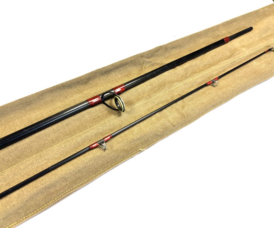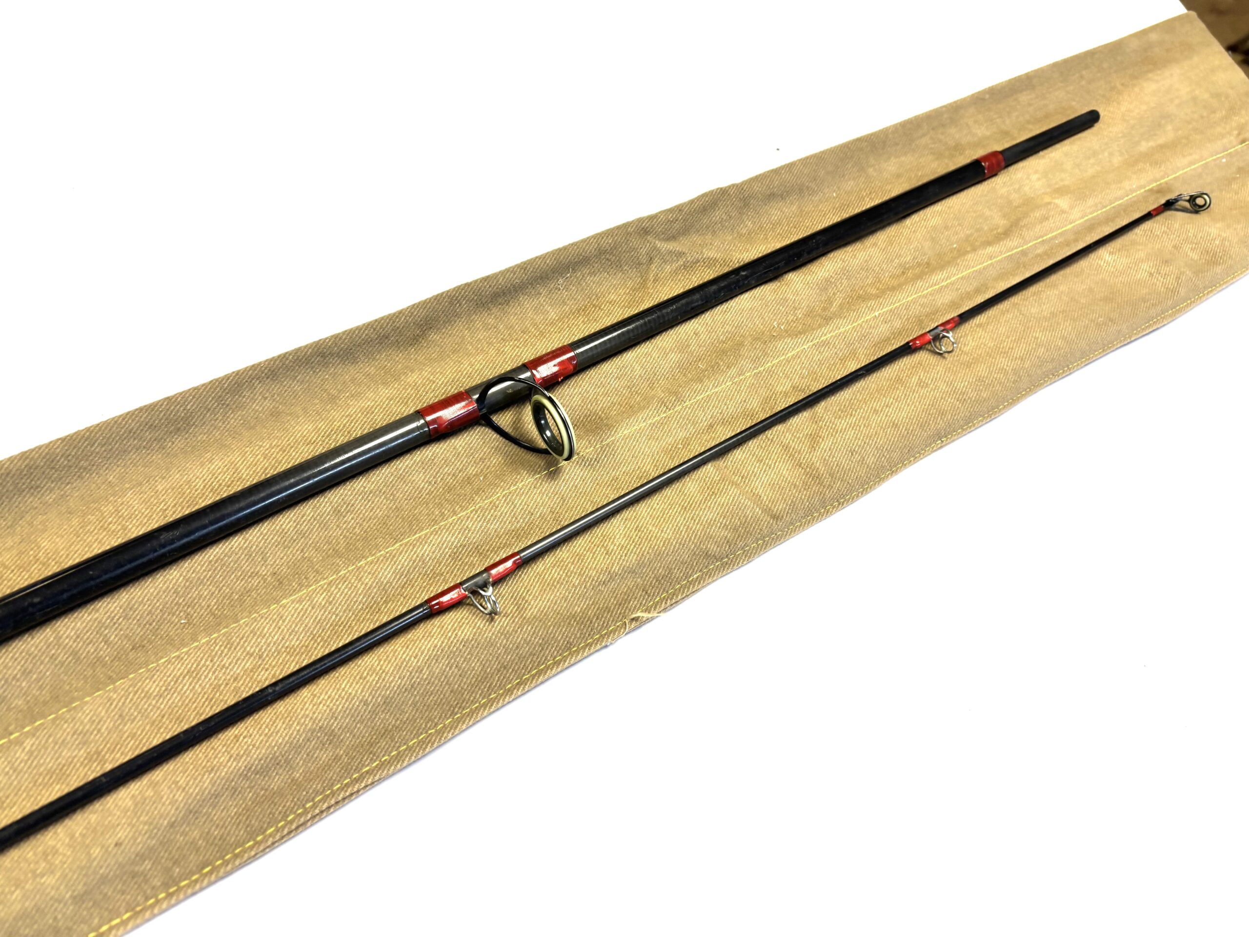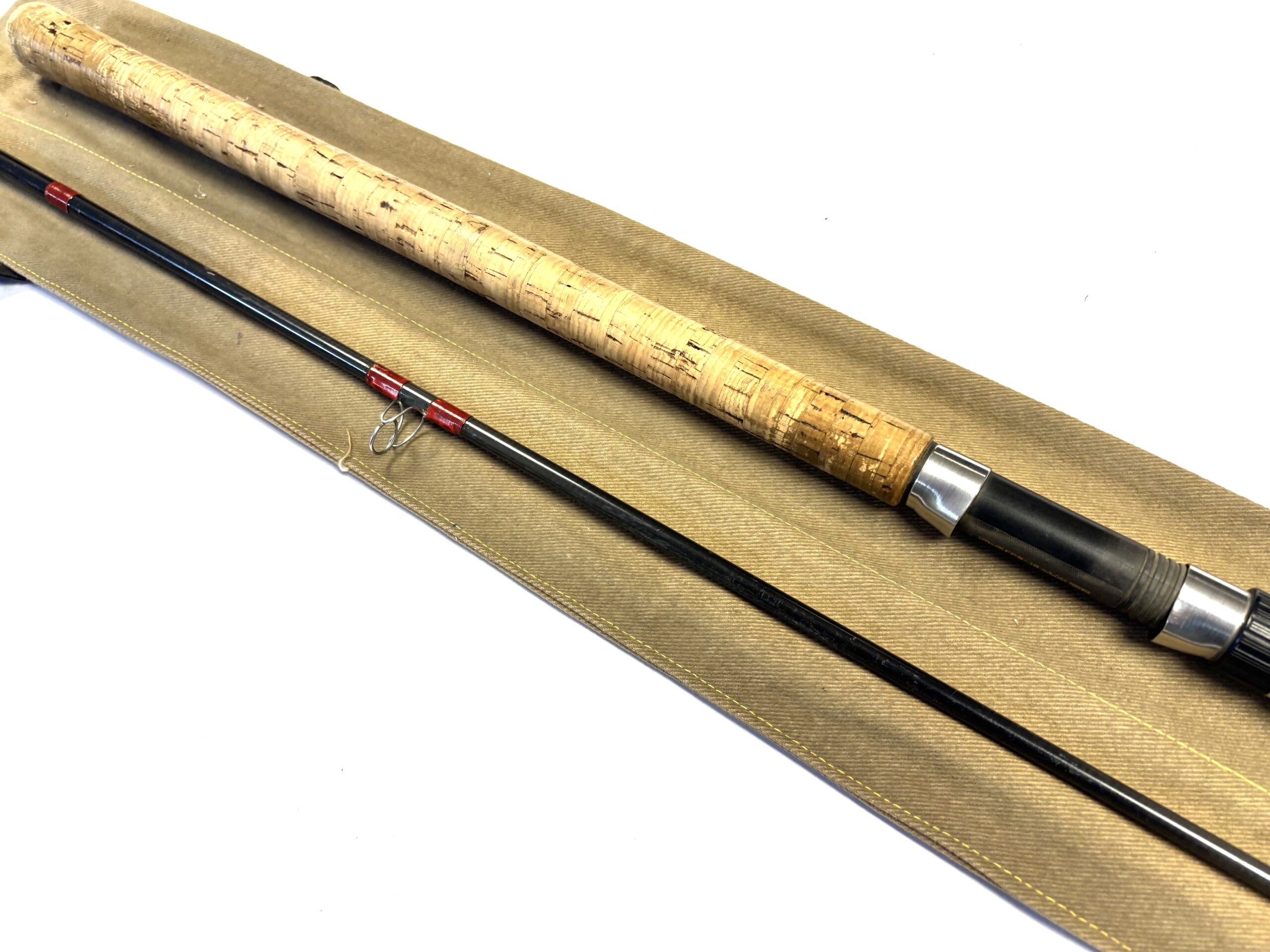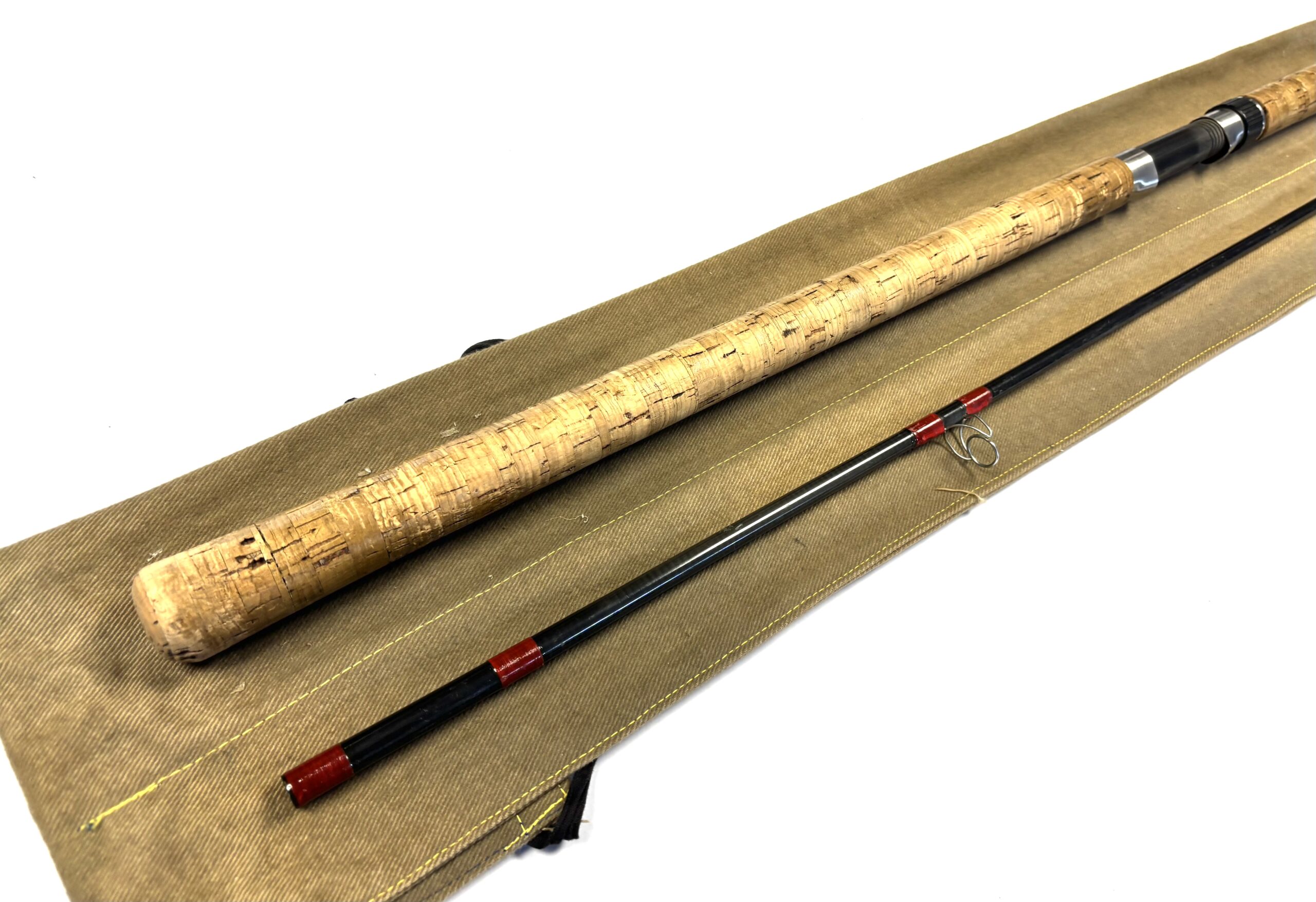 Two-piece carp rod with Fuji fittings, cork handle and rod bag.