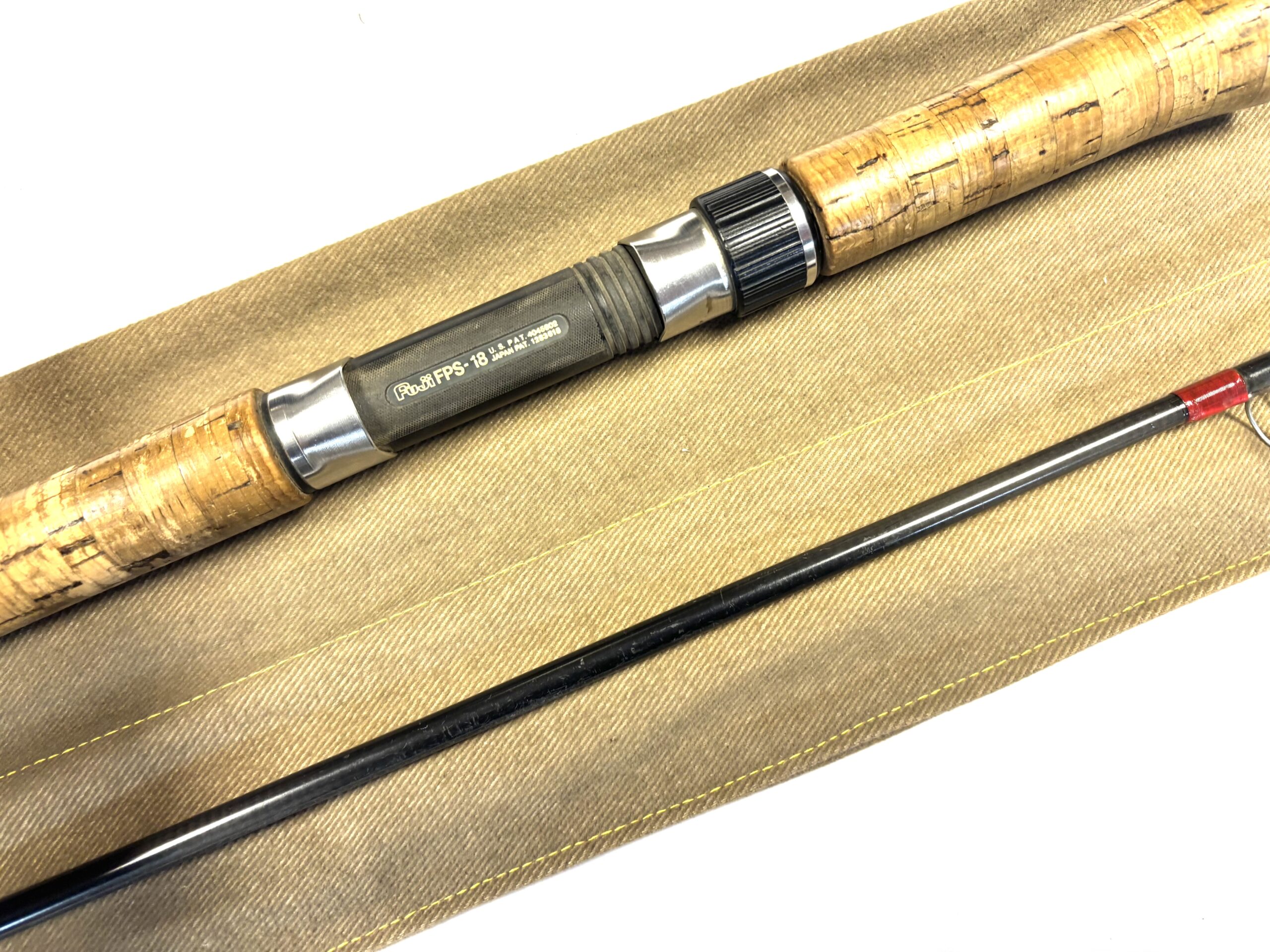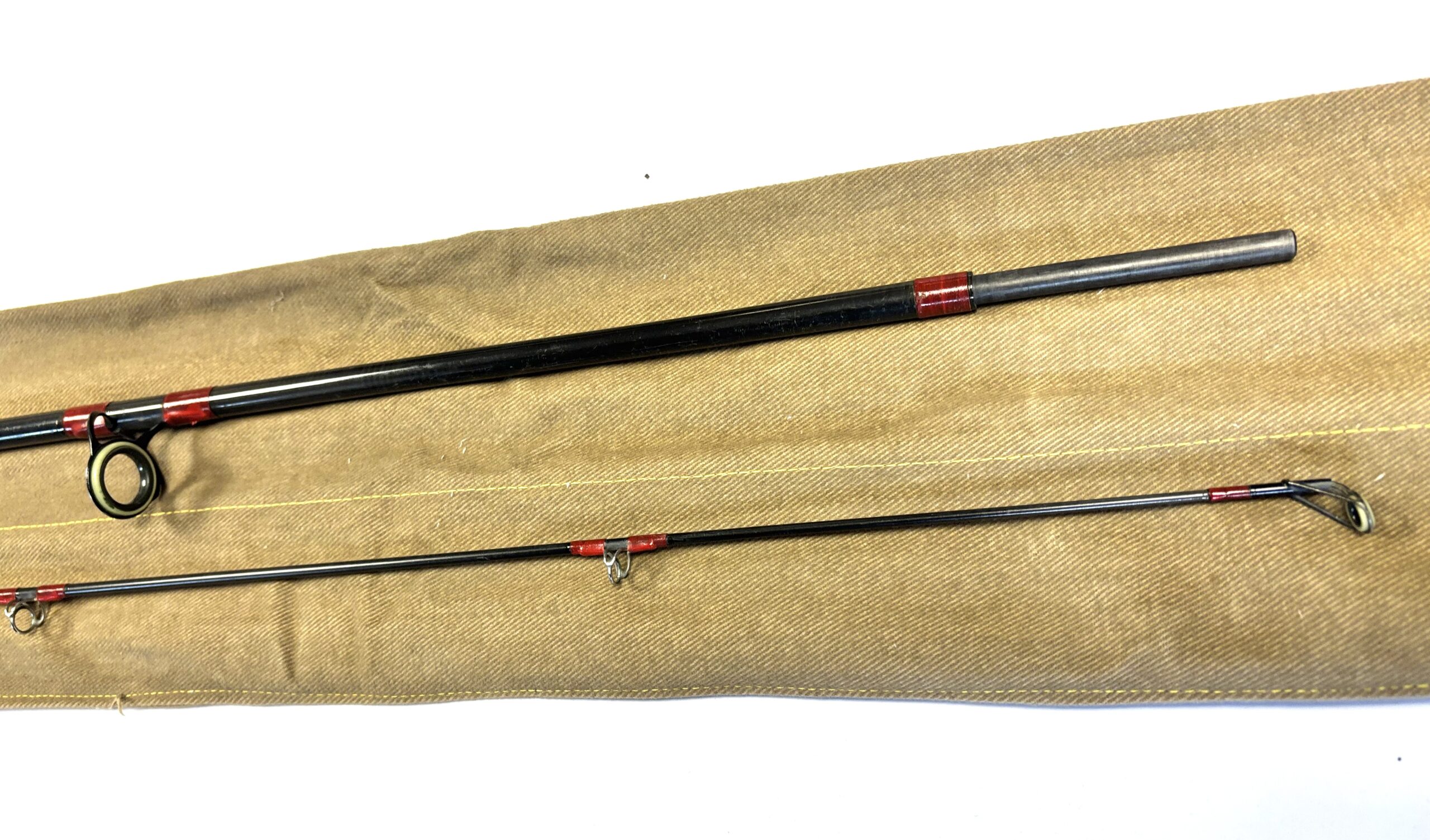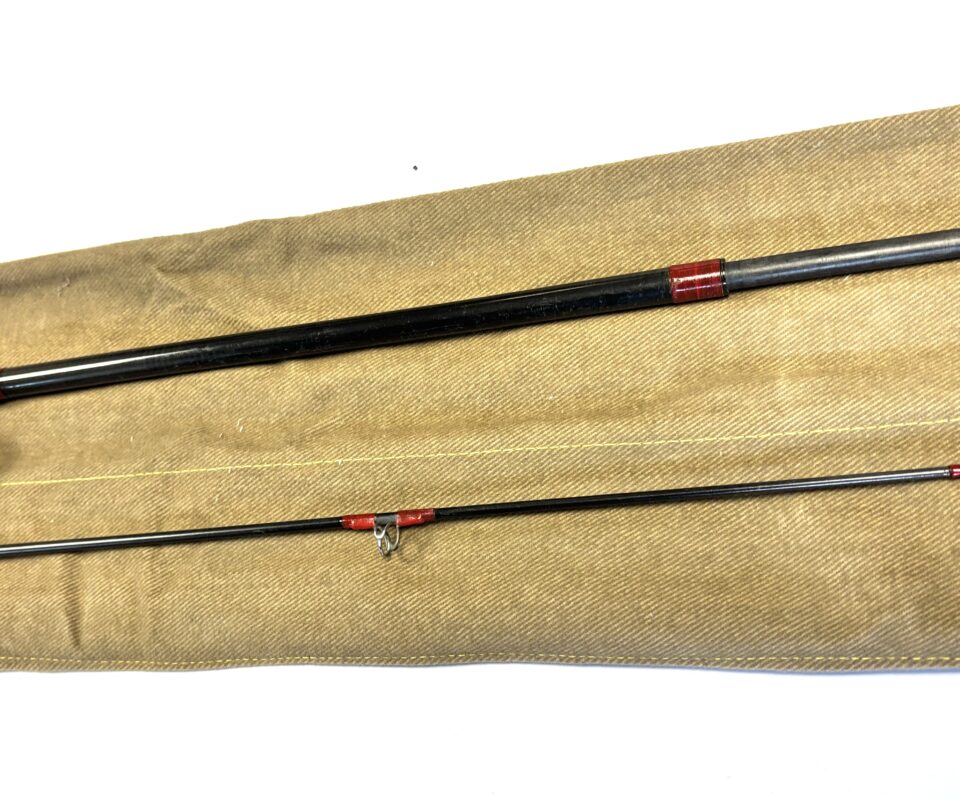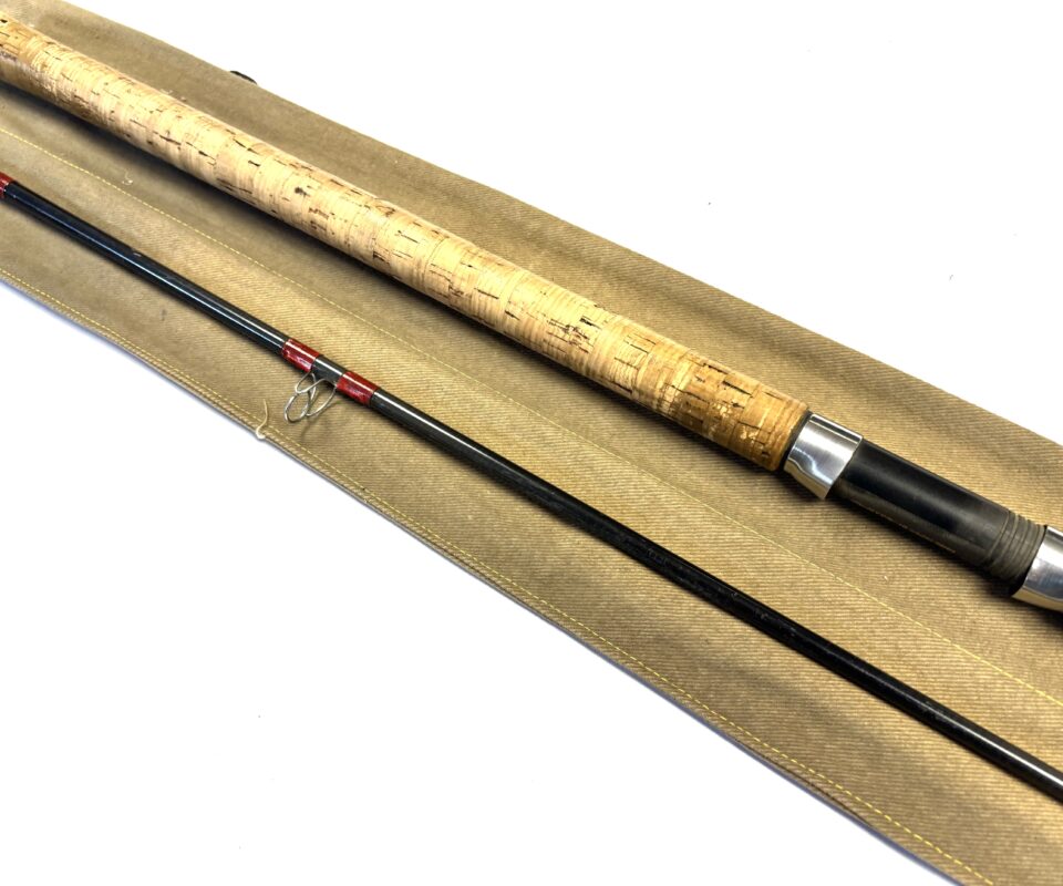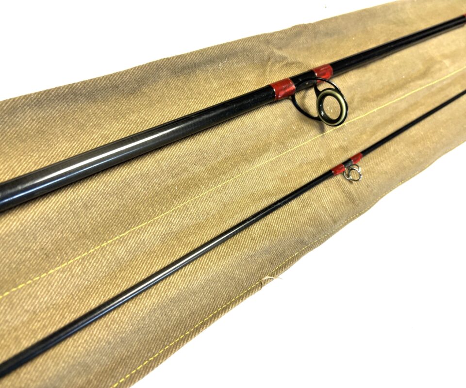 Two-piece carp rod with Fuji fittings, cork handle and rod bag.