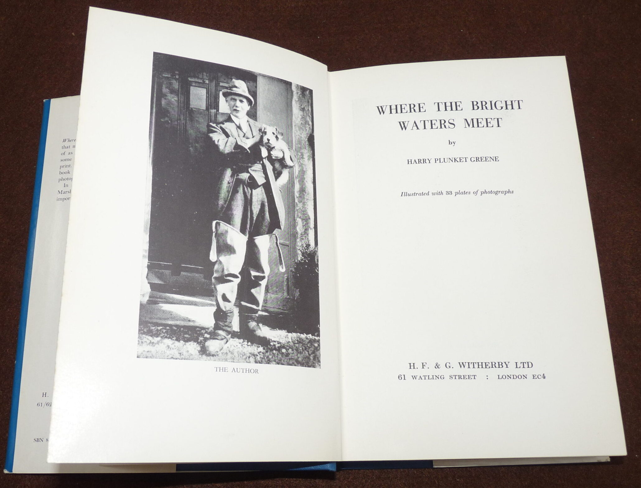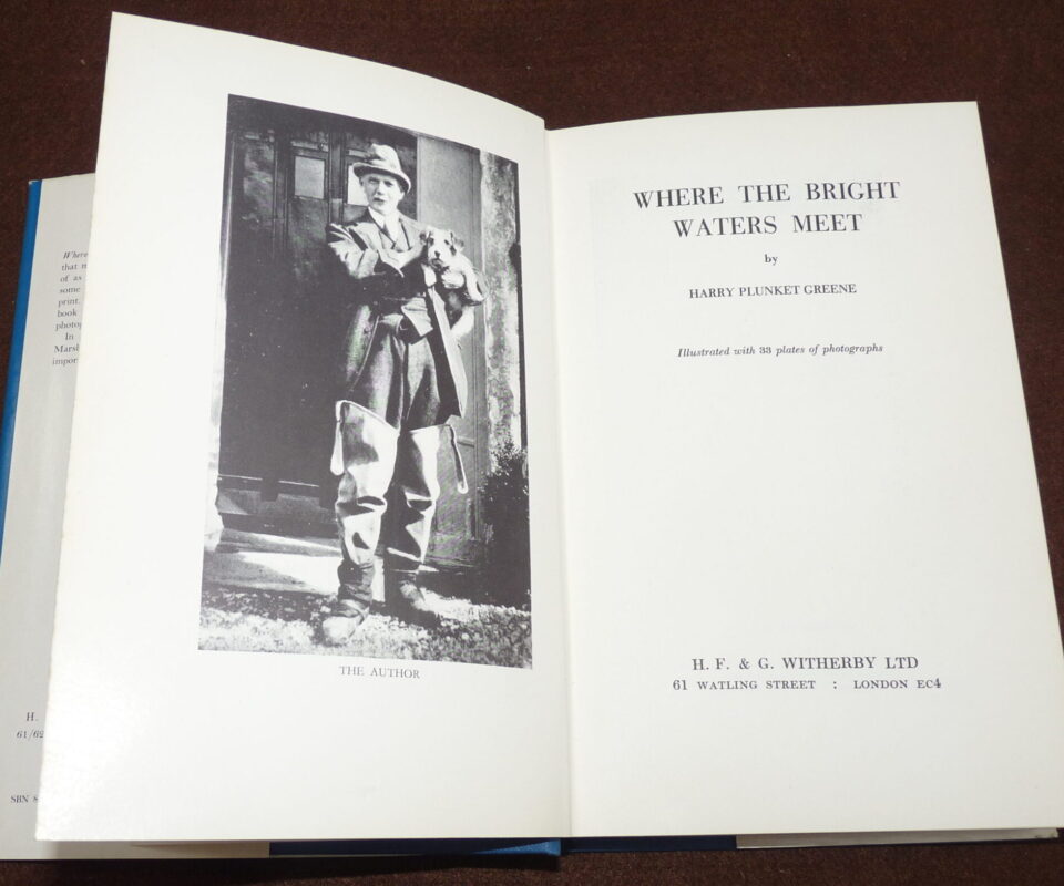 Where The Bright Waters Meet by Harry Plunket Greene, 1969 2nd edition & published by H. F & G. Witherby Ltd. Blue hardback with silver title to the spine and colour dust jacket, 253 pages & is illustrated with 33 plates of photographs, the book is in good condition.
